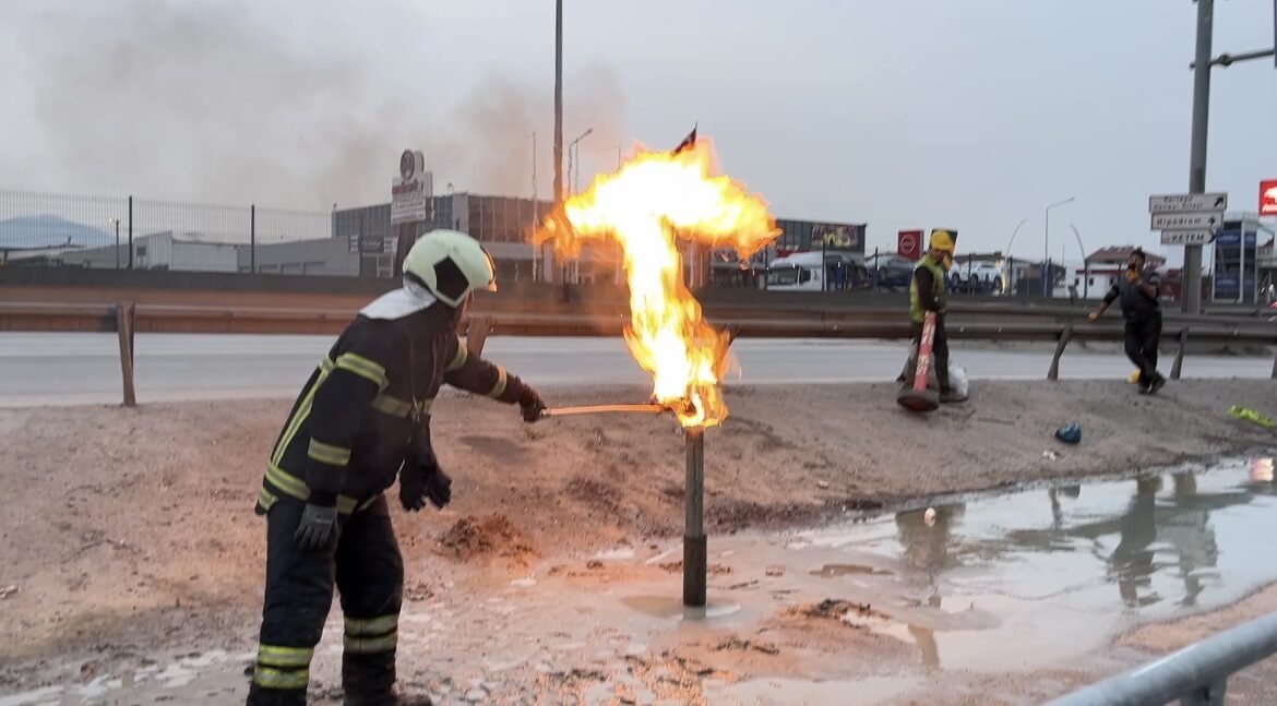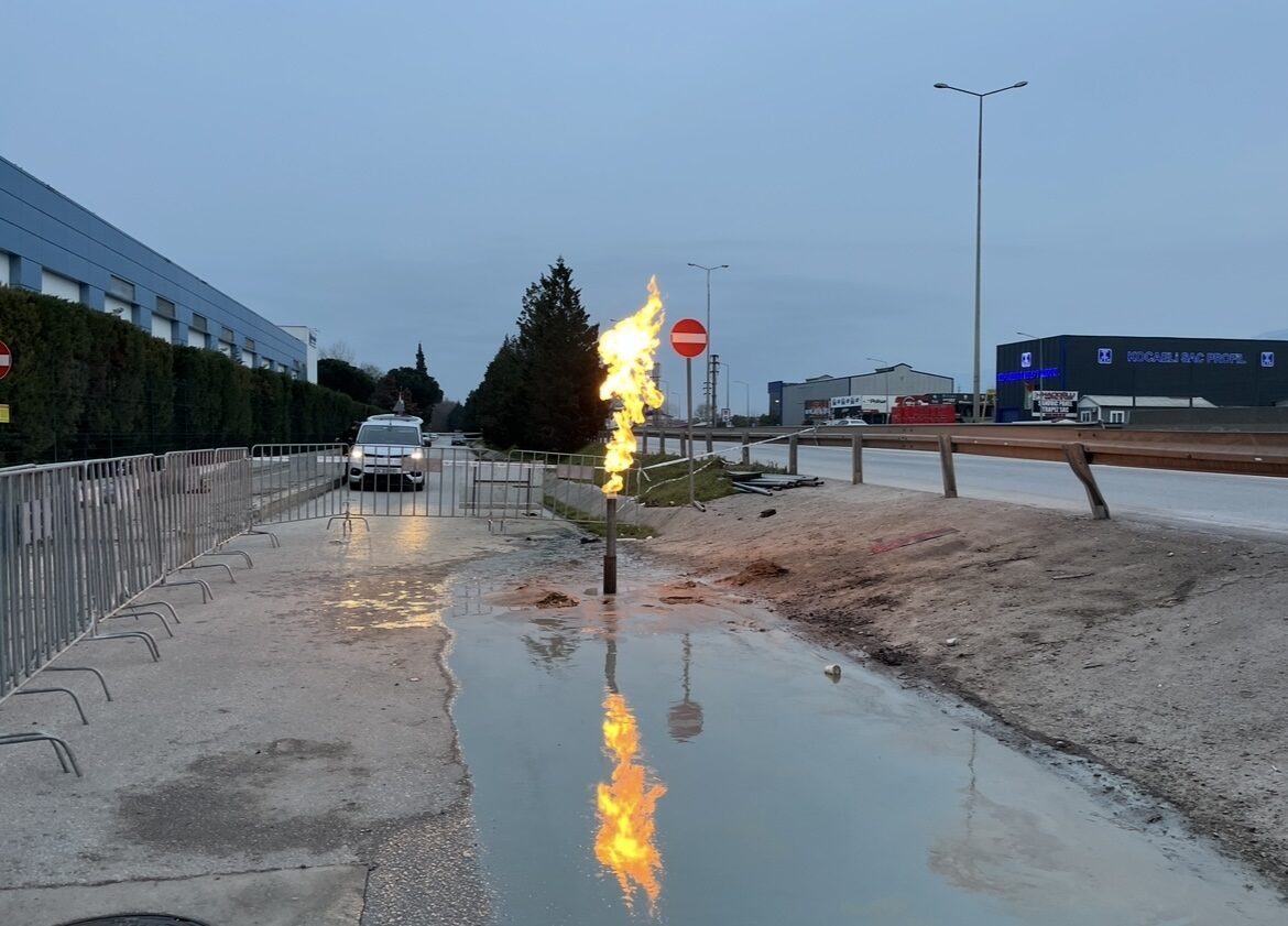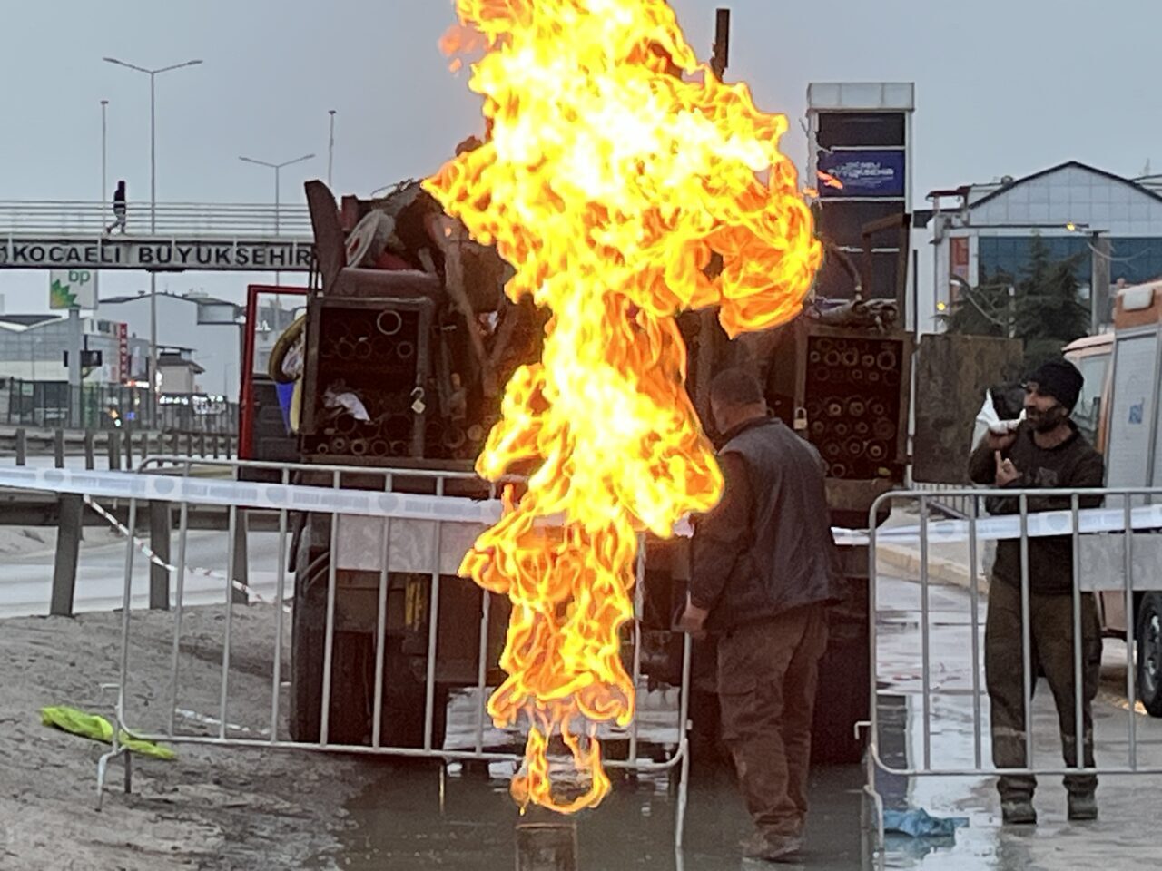 Ardacan UZUN/ KARTEPE (Kocaeli), – KOCAELİ’nin Kartepe ilçesinde metro projesi kapsamında yapılan sondaj çalışması sırasında 17 Şubat’ta çıkan yangın halen devam ederken, arazinin yaklaşık 500 metre uzağında yapılan sondaj çalışmasında da gaz açığa çıktı. Ekipler, gazın türünün belirlenmesi için numune aldıktan sonra gazı kontrollü şekilde alevlendirdi.