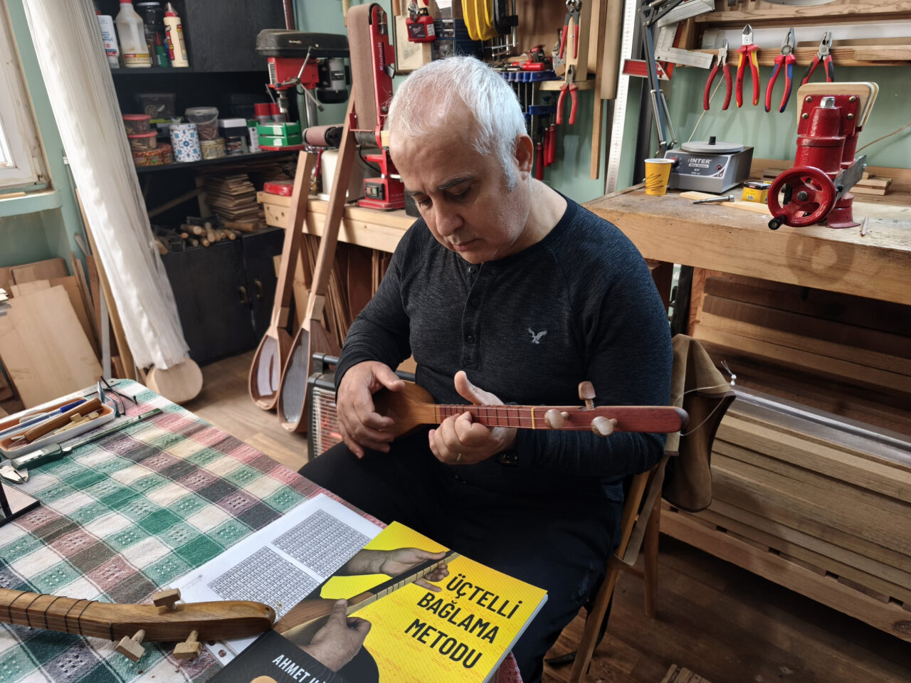 Ünsal YÜCEL/EDİRNE, – EDİRNE’nin Keşan ilçesindeki 15 metrekarelik atölyede Teke Yöresi’nde çalınan Yörüklere ait bir çalgı türü olan 3 telli saz yapan Kültür ve Turizm Bakanlığı Somut Olmayan Kültür Mirası Taşıyıcısı Ahmet Uğur Parmaksız (55), yetiştirecek çırak bulamadığını belirtti. Parmaksız, amacının 3 telli sazın gelecek kuşaklara da aktarılması olduğunu söyledi.