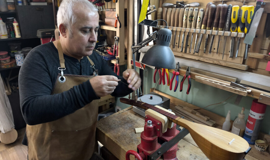 Ünsal YÜCEL/EDİRNE, – EDİRNE’nin Keşan ilçesindeki 15 metrekarelik atölyede Teke Yöresi’nde çalınan Yörüklere ait bir çalgı türü olan 3 telli saz yapan Kültür ve Turizm Bakanlığı Somut Olmayan Kültür Mirası Taşıyıcısı Ahmet Uğur Parmaksız (55), yetiştirecek çırak bulamadığını belirtti. Parmaksız, amacının 3 telli sazın gelecek kuşaklara da aktarılması olduğunu söyledi.