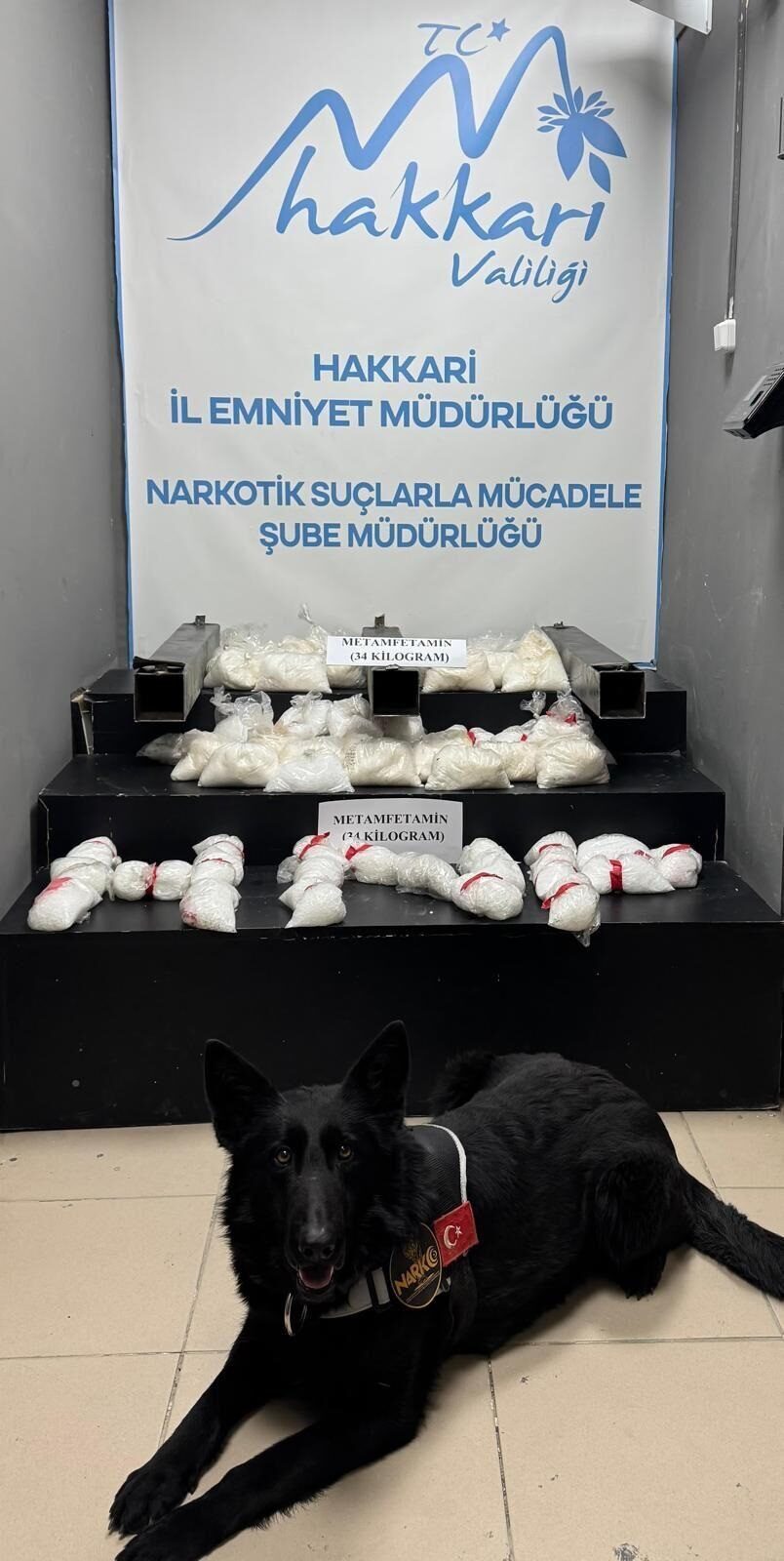 Mehmet ÖZKAN/HAKKARİ, – HAKKARİ’de, polis ekiplerinin şüphe üzerine durdurduğu otomobilde, narkotik köpeğiyle yapılan aramada 34 kilo metamfetamin ele geçirildi, gözaltına alınan sürücü tutuklandı.
