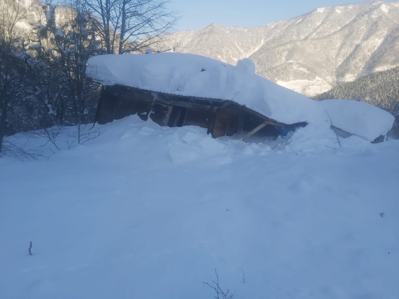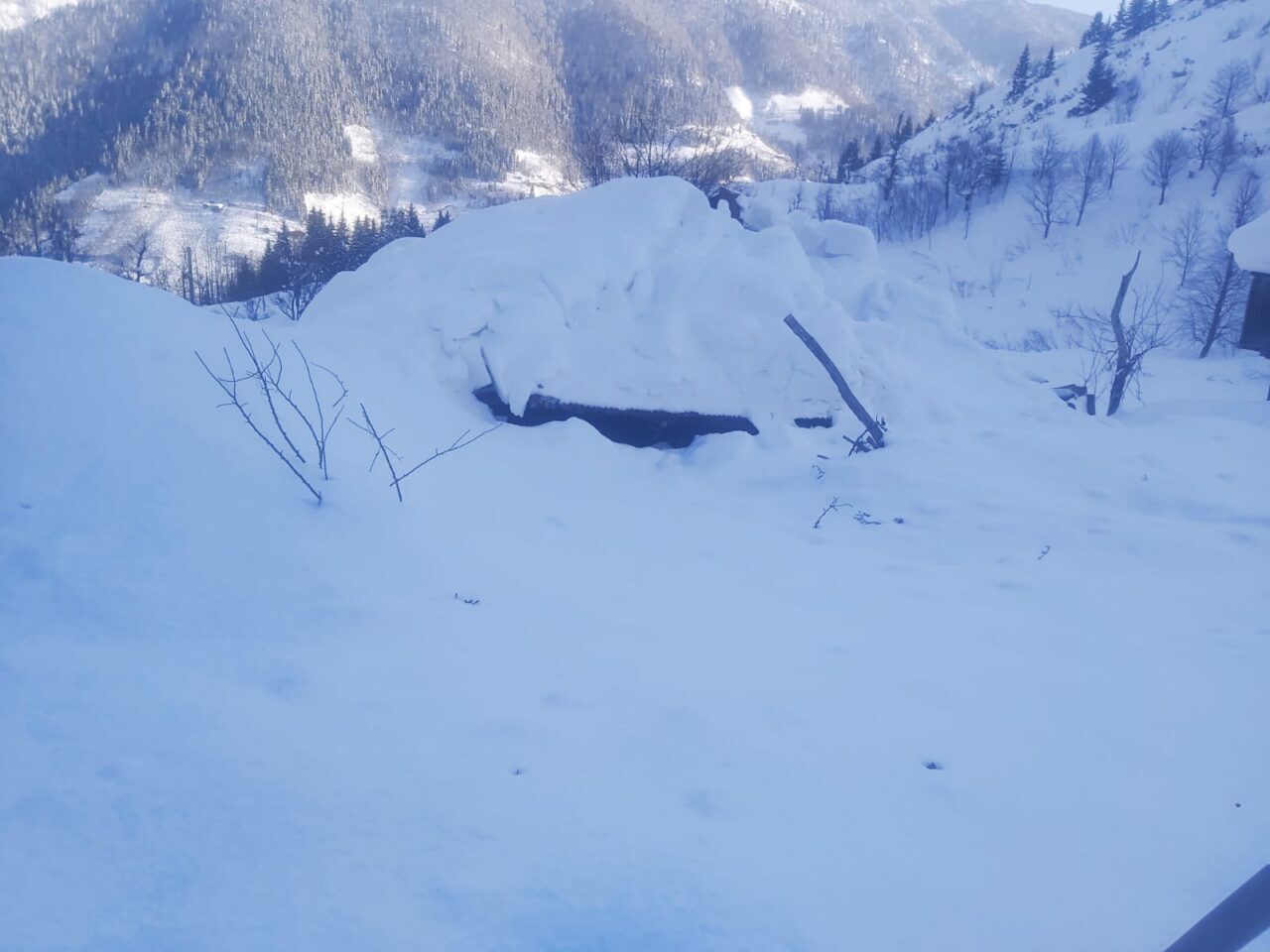 Nurbay USTA/BORÇKA (Artvin), – ARTVİN’in Borçka ilçesinde 2 boş ev ile 1 iş makinesinin üzerine çığ düştü.