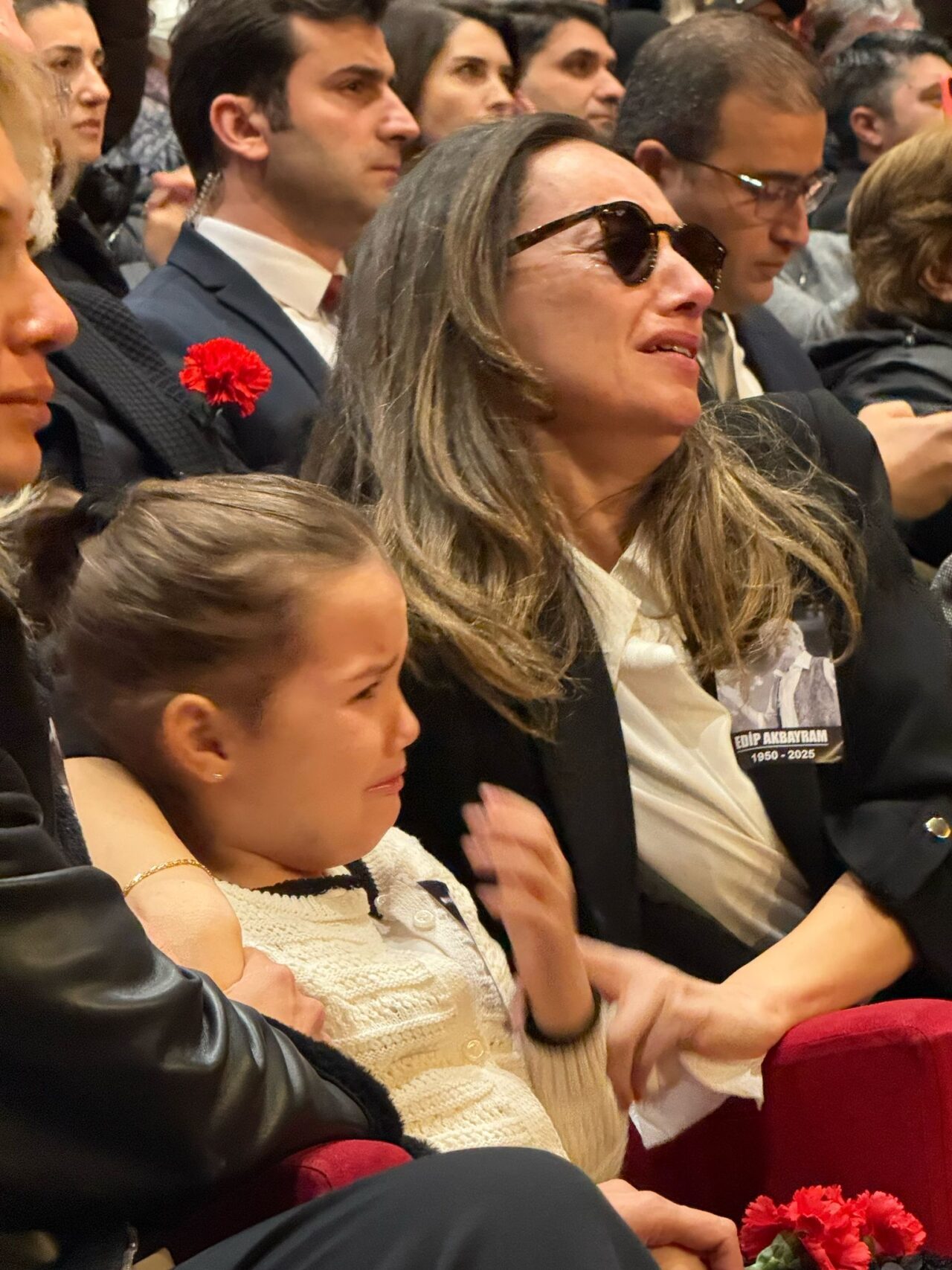 Hasan YILDIRIM-Kübra SONKAYA/ İSTANBUL, – SANATÇI Edip Akbayram, tedavi gördüğü Haydarpaşa Numune Eğitim ve Araştırma Hastanesi’nde 2 Mart Pazar günü çoklu organ yetmezliğinden hayatını kaybetmişti. 74 yaşında hayatını kaybeden sanatçı Edip Akbayram için Cemal Reşit Rey’de tören düzenleniyor. Törende ailenin yakınları ve çok sayıda sanatçı katılırken, Akbayram’ın kızı Türkü Akbayram ve torunu Lavin gözyaşlarına hakim olamadı.