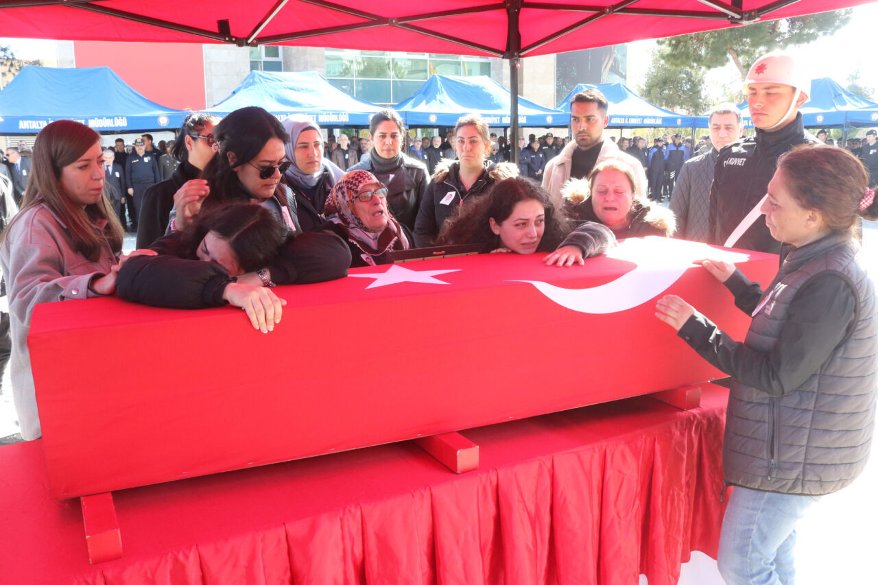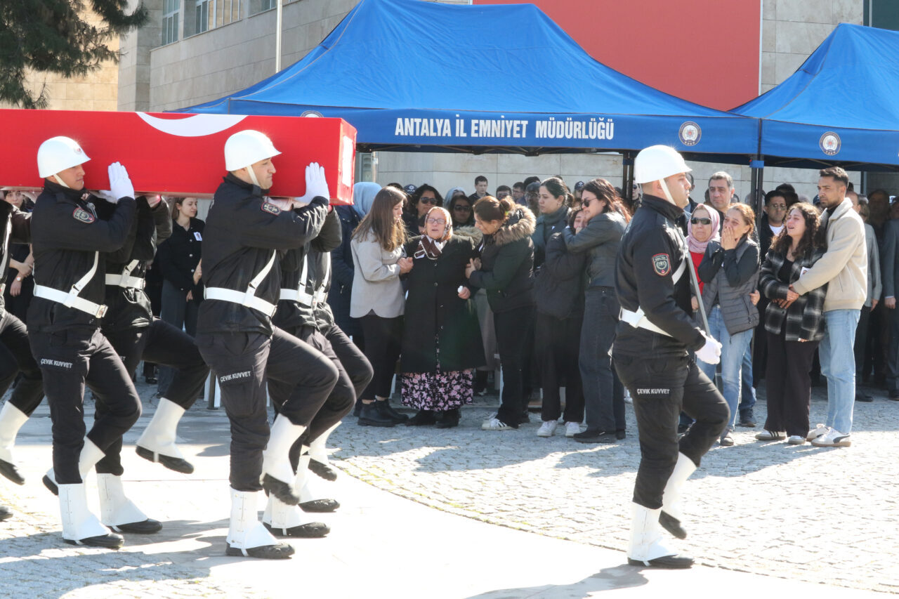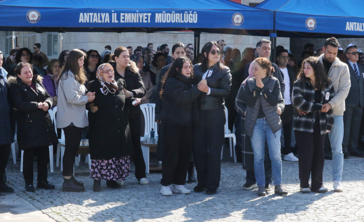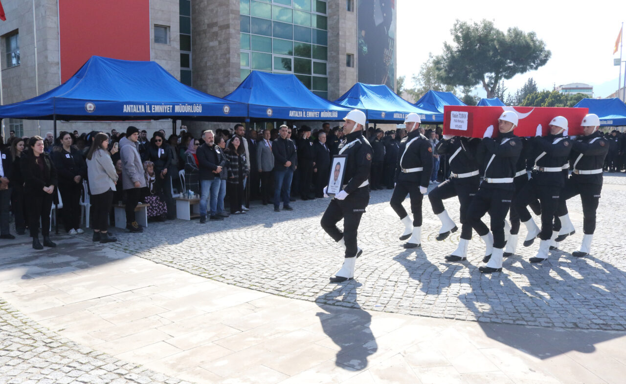 Dün gece trafik kazası sonrası kaldırıldığı hastanede hayatını kaybeden Antalya Emniyet Müdürlüğü Kepez Aile İçi ve Kadına Karşı Şiddetle Mücadele Büro Amirliği’nde görevli polis memuru Yasin Turan için emniyet müdürlüğü binasında tören düzenlendi. Törene, İl Emniyet Müdürü İlker Arslan, İl Jandarma Komutanı Tarık Hekimoğlu, emniyet müdür yardımcıları, şube müdürleri, çalışma arkadaşları, Turan’ın annesi Nuriye, kızları Işık Esra, Defne ve yakınları katıldı. Saygı duruşuyla başlayan törende, Yasin Turan’ın öz geçmişi ve dualar okundu.