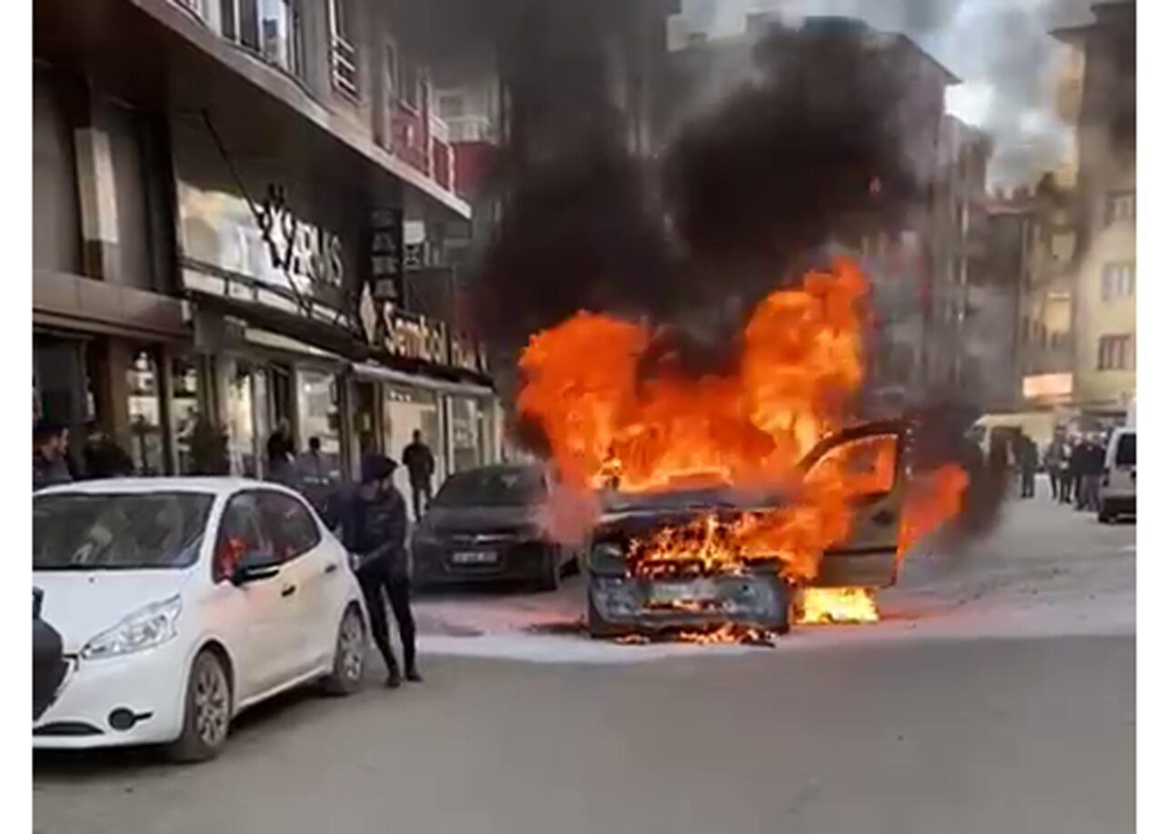 Topçular Mahallesi Fuzuli Caddesi’nde Gaffar Gölçek’e ait 04 D 5302 plakalı hafif ticari araçta henüz belirlenemeyen nedenle, öğle saatlerinde yangın çıktı. Kısa sürede büyüyen alevler aracı sardı. Cadde çift taraflı ulaşıma kapatılırken vatandaşlar alevlerin sıçrama ihtimaline karşın park halindeki otomobili itekleyerek yanan araçtan uzaklaştırdı. LPG’li aracın patlama ihtimaline karşı bölgede tedbir alındı. İhbar üzerine bölgeye itfaiye ekibi sevk edildi. Iğdır Belediyesi itfaiye görevlileri, yangını söndürdü.