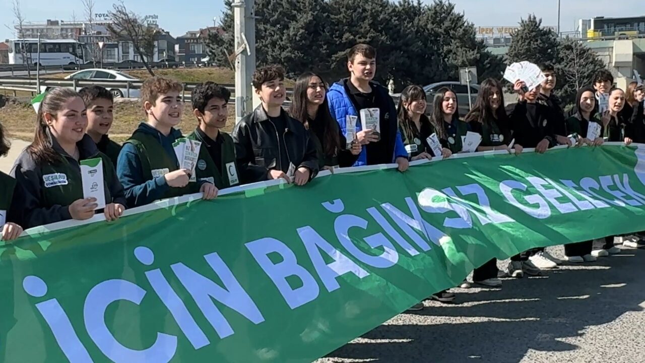 İhsan DÖRTKARDEŞ/İSTANBUL, – AVCILAR Lisesi öğrencileri 1-7 Mart ‘Yeşilay Haftası’ kapsamında bağımlılıkla mücadele için yürüyüş yaptı. Farkındalık yaratması amaçlanan çalışmada lise öğrencileri Marmara Caddesi’nde broşür ve rozet de dağıttı.