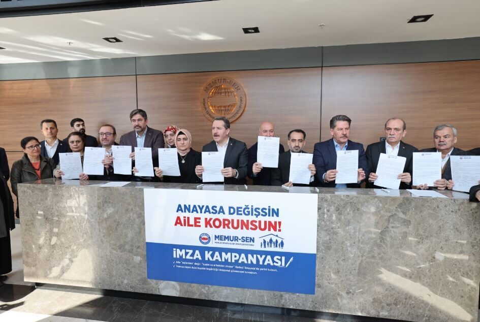 Gizem ÇORLU-Celal ATALAY/ANKARA, – MEMUR Sendikaları Konfederasyonu (Memur-Sen) başörtüsü özgürlüğü ve aile yapısının korunmasının anayasal güvenceye kavuşturulması amacıyla imza kampanyası başlattı. Genel Başkan Ali Yalçın, “Anayasa’nın 41’inci maddesinin birinci fıkrasına, ‘Aile, kadın ve erkekten oluşur. Aile ilişkisinin temeli evliliktir’ cümlelerinin eklenerek aile kurumunun ifsada açık olmamasını, sapkınlıkların üzerinde tepinmek istedikleri bir zemine dönüşmemesini istiyoruz” dedi.