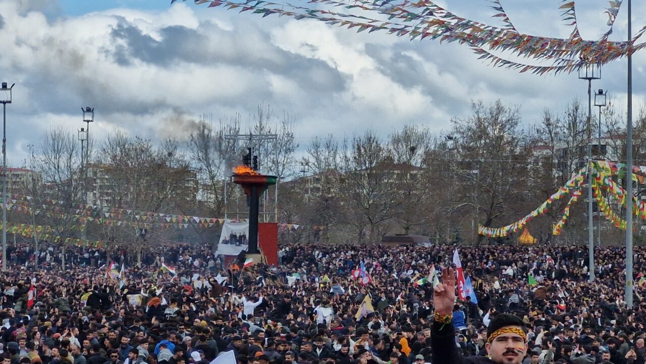 DEM Parti öncülüğünde, ‘Özgürlük için demokratik toplum’ sloganı ile Bağlar ilçesindeki Nevruz Parkı’nda nevruz kutlamaları başladı. Kutlamalara DEM Parti eş genel başkanları Tuncer Bakırhan ve Tülay Hatimoğulları, eski İzmir Büyükşehir Belediye Başkanı Tunç Soyer, Fransa, İrlanda, Çekya, Irak, Tunus gibi ülkelerden yabancı davetliler katıldı. Nevruz alanı helikopterle havadan izlenirken, çevrede yoğun güvenlik önlemleri alındı. Alanda olası bir olumsuzluğa karşı itfaiye ve ambulans ekipleri hazır bekletilirken, parka çakmak, kalem ve parfüm gibi malzemelerin sokulmasına izin verilmedi.