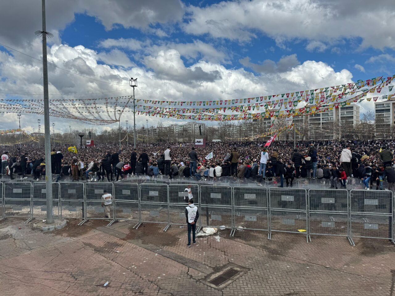 Diyarbakır’da DEM Parti öncülüğünde yapılan nevruz kutlamasında CHP Genel Başkanı Özgür Özel’in mesajı okundu. Özel, mesajında, “Sevgili Diyarbakırlılar, değerli kardeşlerim. Bir yandan zalim dehaklarla mücadele ederken, bir yandan da baharın müjdecisi nevruzu kutluyoruz. Bu topraklar, farklı kültürlerin, dillerin ve inançların bir arada kardeşçe yaşadığı, dayanışmanın ve umudun yeşerdiği kadim topraklardır. Hiçbir zalim, hiçbir dehak kardeşliğimizi bozamadı, bozamayacak. Bizler, farklılıklarımızın harmanlanmasıyla oluşmuş zenginliğin farkında olarak, kimsenin kendini dışlanmış hissetmediği, herkesin eşit haklarla, barış içinde yaşadığı bir ülke için mücadelemizi kararlılıkla sürdürüyoruz. Demokrasiye, adalete ve özgürlüğe olan inancımızla, herkesin eşit yurttaşlık temelinde bir arada yaşadığı bir Türkiye’yi hep birlikte inşa edeceğiz. Nevruzun sıcaklığı, tıpkı bugün yakılan ateş gibi yüreklerimizi aydınlatsın ve geleceğe dair umutlarımızı büyütsün. Bu duygu ve düşüncelerle, tüm Diyarbakırlı kardeşlerimin Nevruz’unu kutluyor, bu baharın barışa, kardeşliğe ve demokrasiye vesile olmasını diliyorum. Nevruz piroz be” ifadelerine yer verdi. Diğer yandan İl Emniyet Müdürü Fatih Kaya, alanda alınan güvenlik önlemlerini yerinde inceledi.