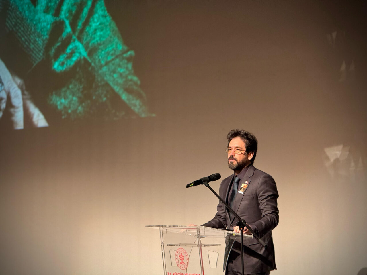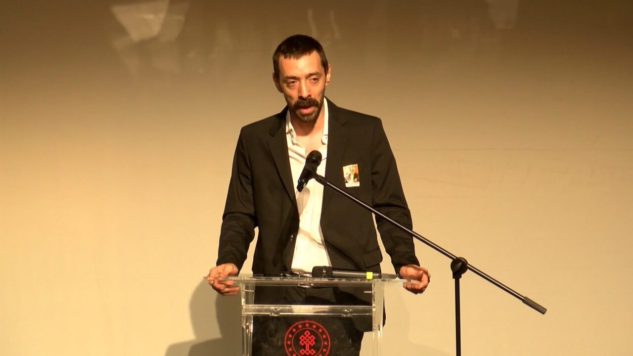 Törende gözyaşlarını tutmakta zorluk çeken Osman Sınav’ın oğlu yönetmen Yusuf Ömer Sınav, “Ben çok iyi hazırlanamadım kusura bakmayın. Buraya gelen ve gelemeyen hayatına dokunmuş herkese çok teşekkür ederim. Babam çok özel bir adamdı. Sadece yaptığı filmleriyle değil hayata bakışıyla, insanlara bakışıyla, insanlara kattığı değerle, insanlara verdiği değerle. Birçok kişiye bir baba gibi dokundu. Biz aile değil, onun etrafında büyüyen bir topluluk olduk. Ben sevgisini hep derin şekilde hissettim. Sevgisini göstermeyi çok iyi bilirdi. Sessizliğiyle her şeyi gösterirdi. Sessizliği çok konuşurdu. Onun sevgisi birçok zaman yüksek sesle değil hep derinden içinize işleyerek hissedilirdi. Babamın hayatına baktığınızda yalnızlığı tanıdığını, onurla taşıdığını görürsünüz. Başardıklarını başarması o kadar kolay değildi, kolayca başarmadı. Yeri oldu bizden feragat etmesi gerekti. Ama hep aklında biz vardık. Hep uzaktan onun sevgisini hissettik. Babam ben doğduğum zaman ‘artık yalnız değilim’ demiş. Bana söz verdirdi ‘Ağlama dik dur’ diye. Ona verdiğim sözleri tutmak benim için çok değerli. Biz hiçbir zaman onu değiştirmeye çalışmadık. Hayatımızda ne yaşadıysak hep onun arkasında durmaya çalıştık. Hep onu anlamaya çalıştık. Hep ona layık olmaya çalıştık. Bugünden sonra da bu şekilde böyle devam edecek. Merak etme baba ‘Biz de yalnız değiliz’. Bak baba buradayız. Hep beraberiz. Bu insanları bize kattığın için, bize kattıkların için çok teşekkür ederim. Seni seviyorum” diye konuştu.