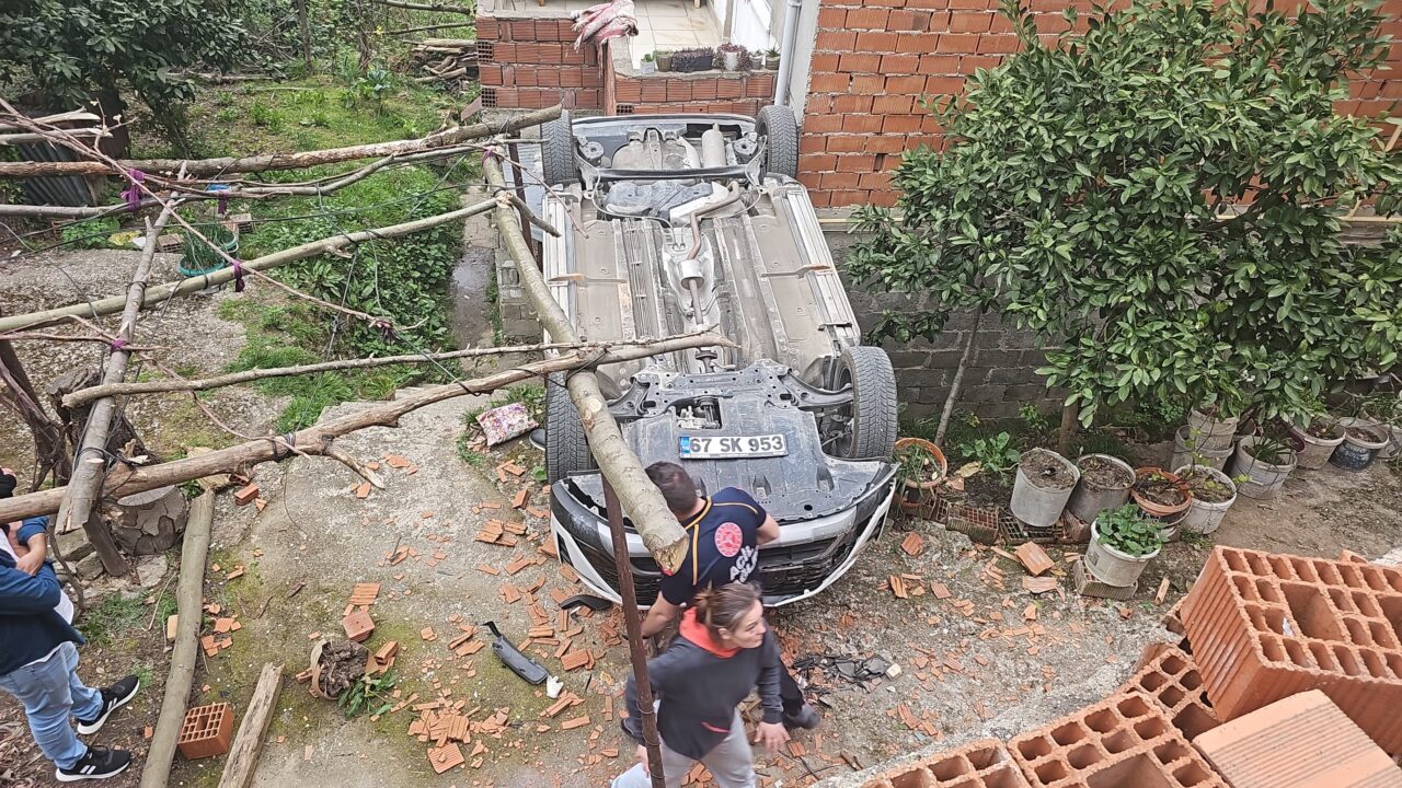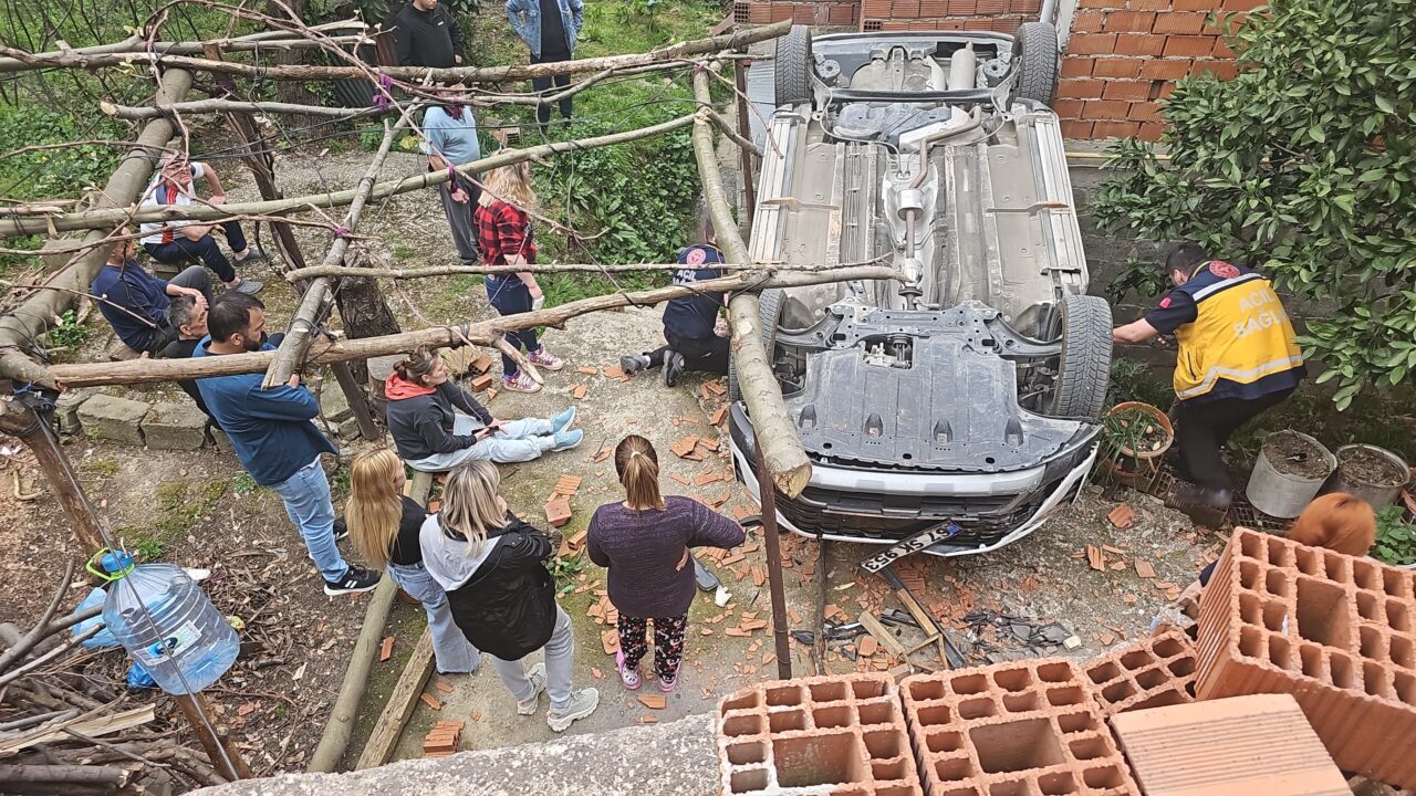 Olay, saat 15.30 sıralarında İncivez Mahallesi Kamelya Sokak’ta meydana geldi. Kumsal G., idaresindeki 67 SK 953 plakalı otomobilini evinin önünde park etmek isterken kontrolü kaybetti. Otomobil 2 metre yüksekten bahçeye düştü. Otomobil ters dönerken kazanın sesini duyanlar panik yaşadı. İhbar üzerine bölgeye polis, sağlık ve itfaiye ekipleri sevk edildi. Yapılan kontrolde sürücü Kumsal G., elinden yaralandığı belirlendi. Ambulansta müdahale edilen sürücü hastaneye gitmedi.