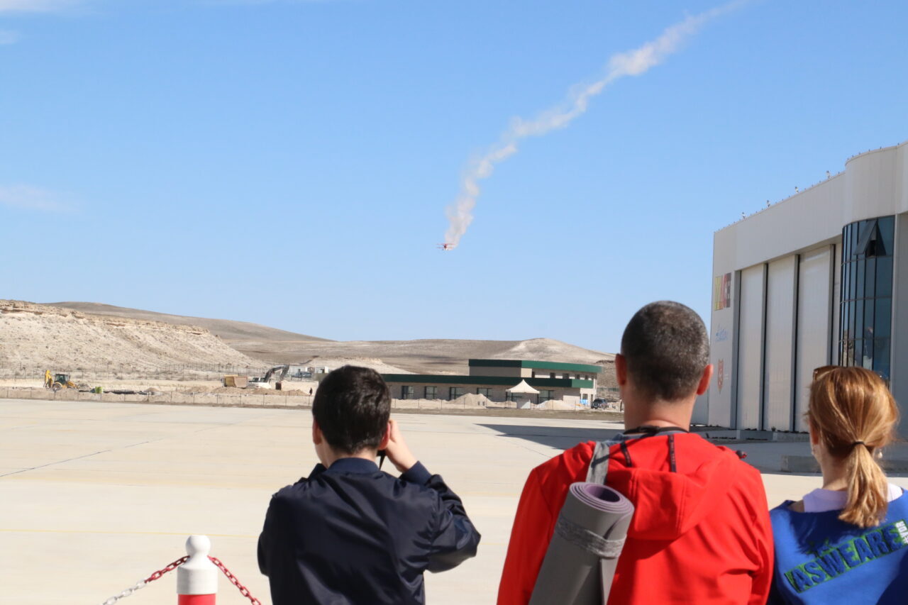 Sempozyumun ardından Türkiye’nin ilk ve tek profesyonel kadın akrobasi pilotu Semin Öztürk Şener, ‘Yeni Menekşe’ adlı uçağıyla ‘Kadınlar Günü’ne özel olarak havalanıp, akrobasi gösterisi yaptı. Şener’in havada zorlu manevralarla yaptığı gösteriyi ilgiyle izleyen katılımcılar, o anları cep telefonları kameralarıyla da kaydetti.