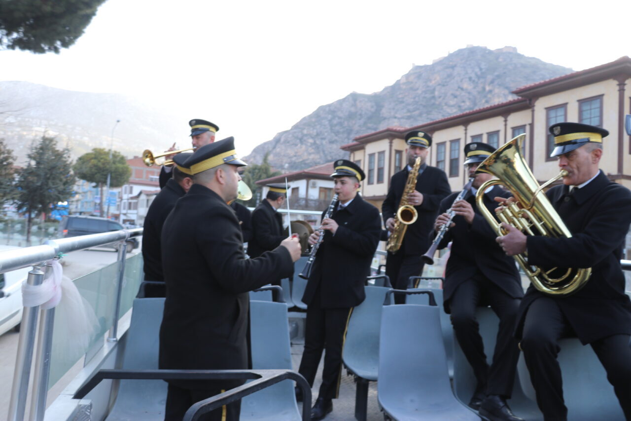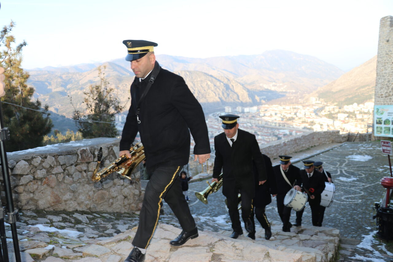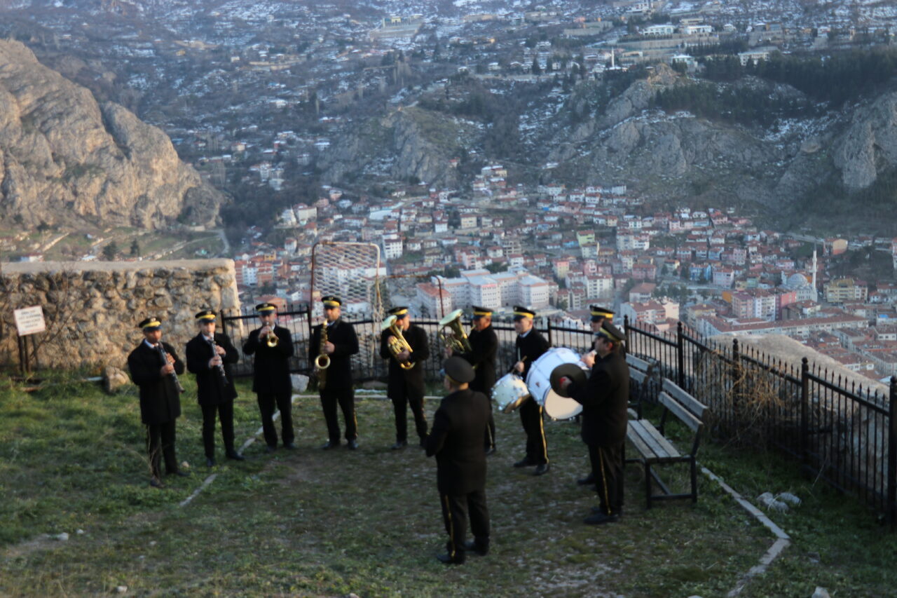 Sinan HARMANCI/ AMASYA, – AMASYA Belediye bandosu, 300 metre yükseklikteki Harşena Kalesi’nde, kent merkezinden duyulacak şekilde iftar öncesi konser verdi. 161 yıldır devam eden gelenekle, bando ekibi marşlar çaldı.