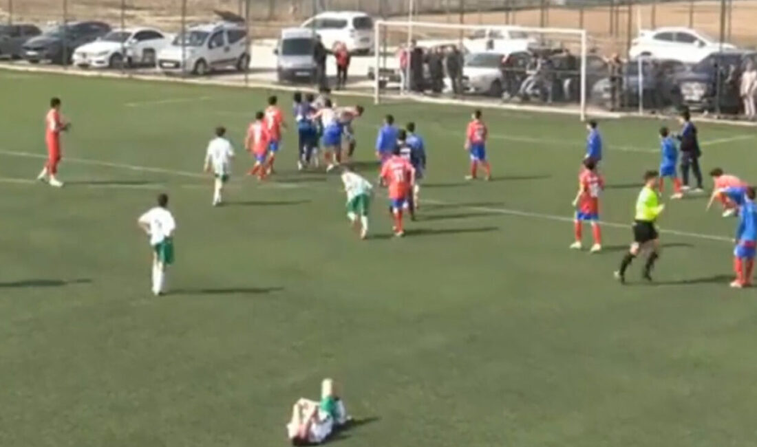 Ali Fuat GÜÇLÜER/ AFYONKARAHİSAR, – AFYONKARAHİSAR’da, amatör takımların altyapılarının mücadele ettiği U-14 Ligi’nin yarı final karşılamasının sonunda tekme ve yumruklu kavga çıktı. O anlar kameraya yansıdı.