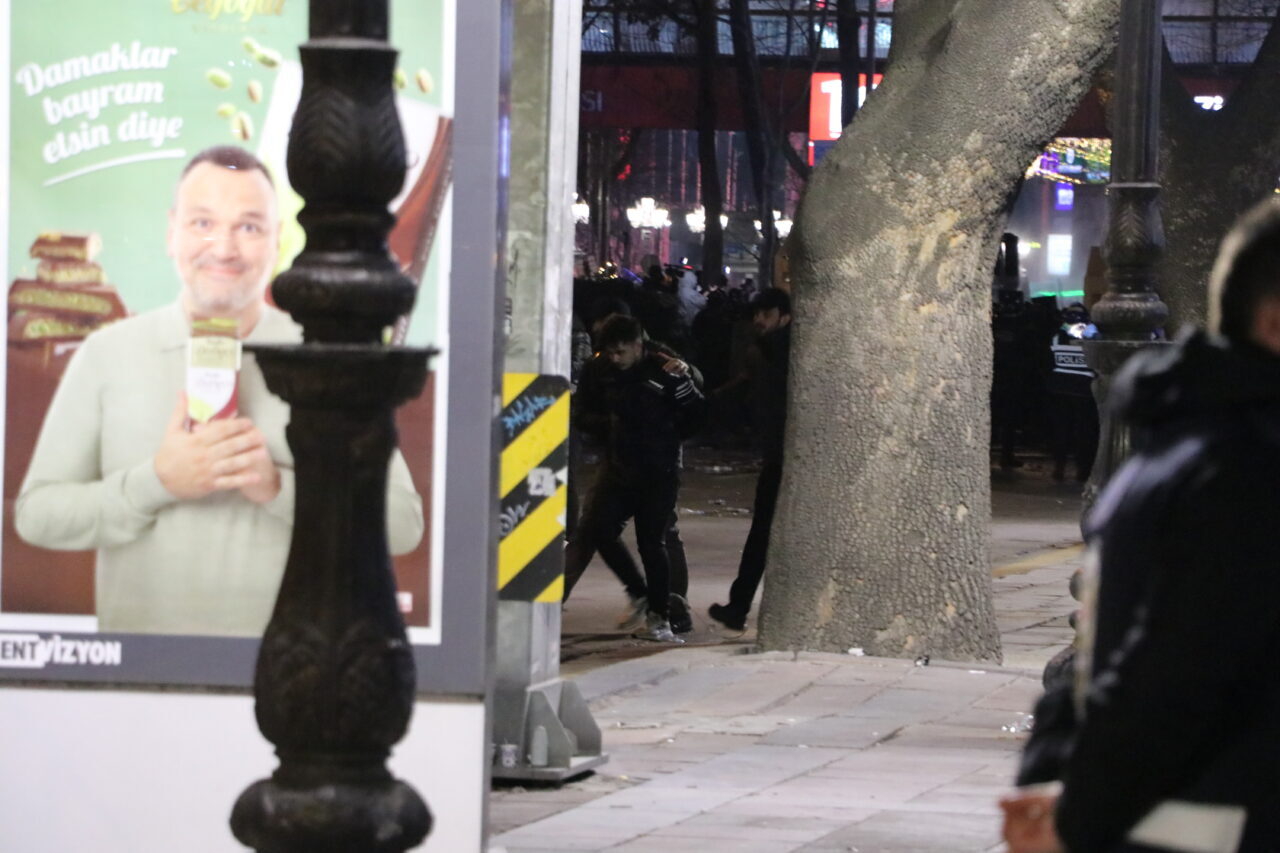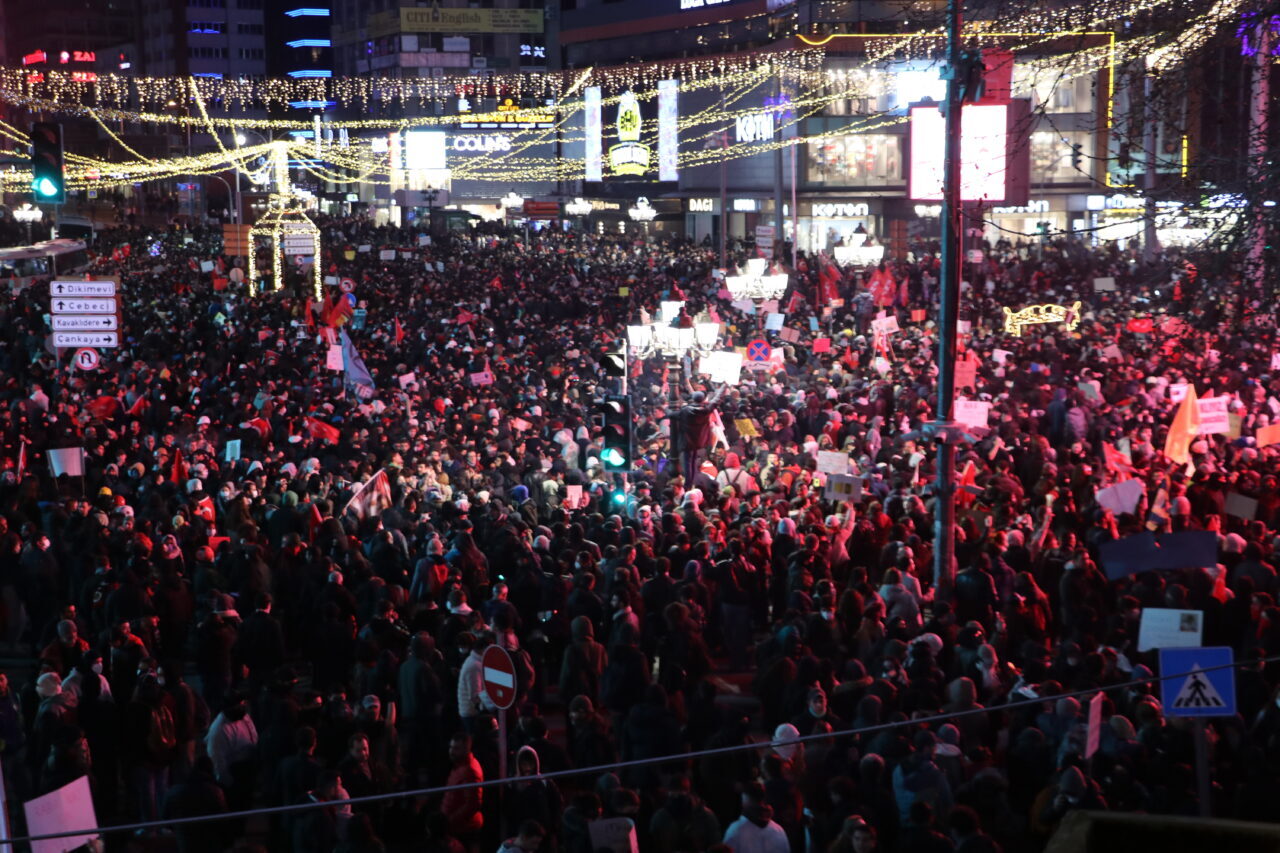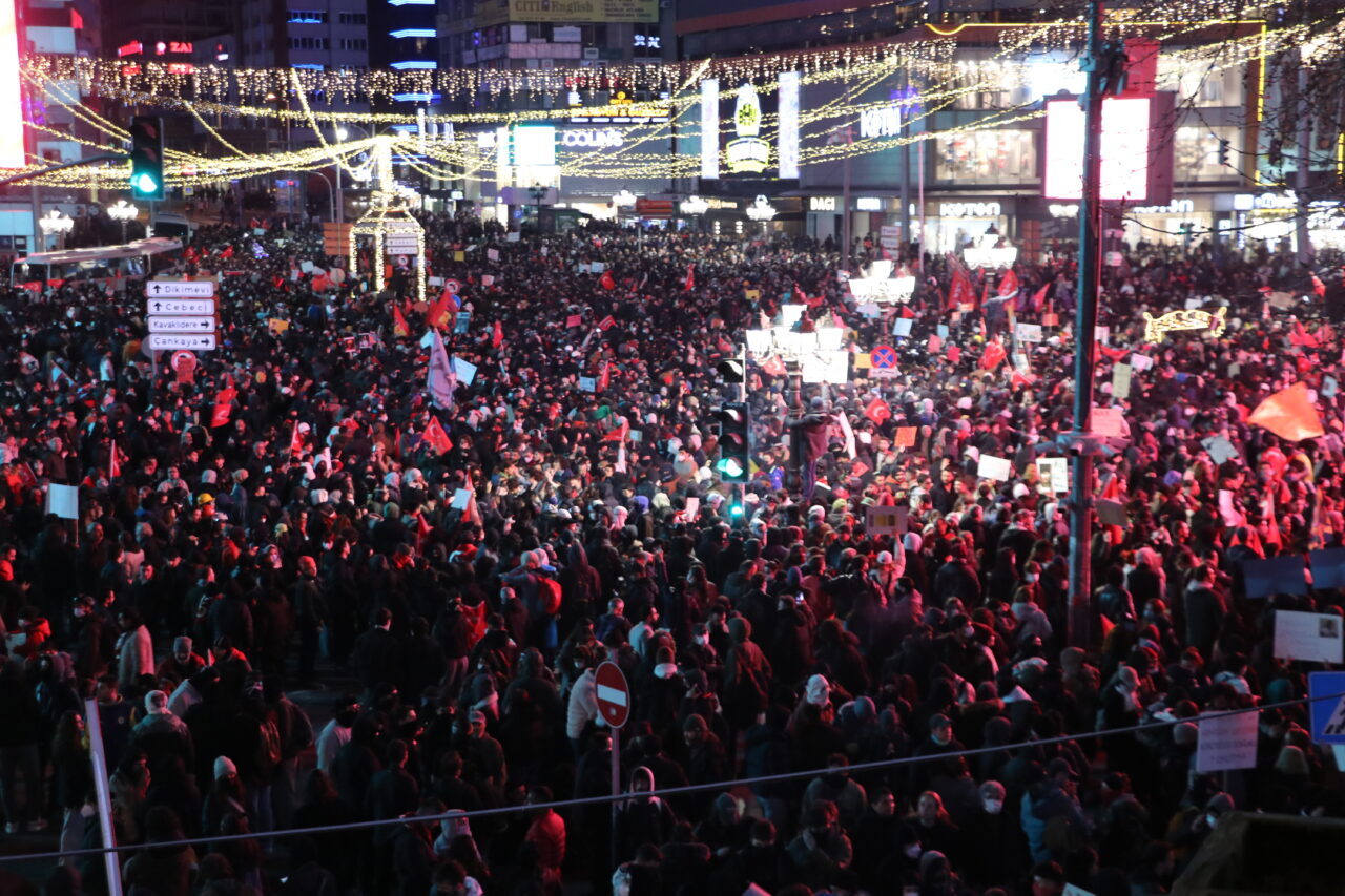 İstanbul Cumhuriyet Başsavcılığınca başlatılan soruşturmalar kapsamında İBB Başkanı Ekrem İmamoğlu’nun tutuklanması, Ankara’da da protesto edildi. Kızılay Güvenpark’ta toplanan grup slogan atıp, pankart ve döviz taşıdı. Daha sonra Atatürk Bulvarı üzerinde yürümek isteyen grup, kendilerini durdurmak isteyen polislere meşale, şişe ve yanıcı madde attı. Grup ile polisler arasında zaman zaman arbede yaşandı. Meşrutiyet Caddesi girişine bariyer kuran polis, göstericilere dağılmaları yönünde uyarıda bulundu. Polis, uyarıları dikkate almayan gruba biber gazı ve TOMA ile müdahalede bulundu. Polisin müdahalesinin ardından grup dağılırken, çok sayıda gösterici gözaltına alındı.