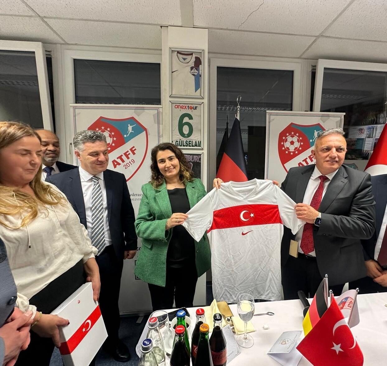 İftarda organizasyonunda yer alan Stuttgart Başkonsolosu Makbule Koçak Kaçar’a da Manisa’nın plaka kodu olan 45 numaralı, isminin yazılı olduğu Türkiye Milli Takımı forması hediye edildi.