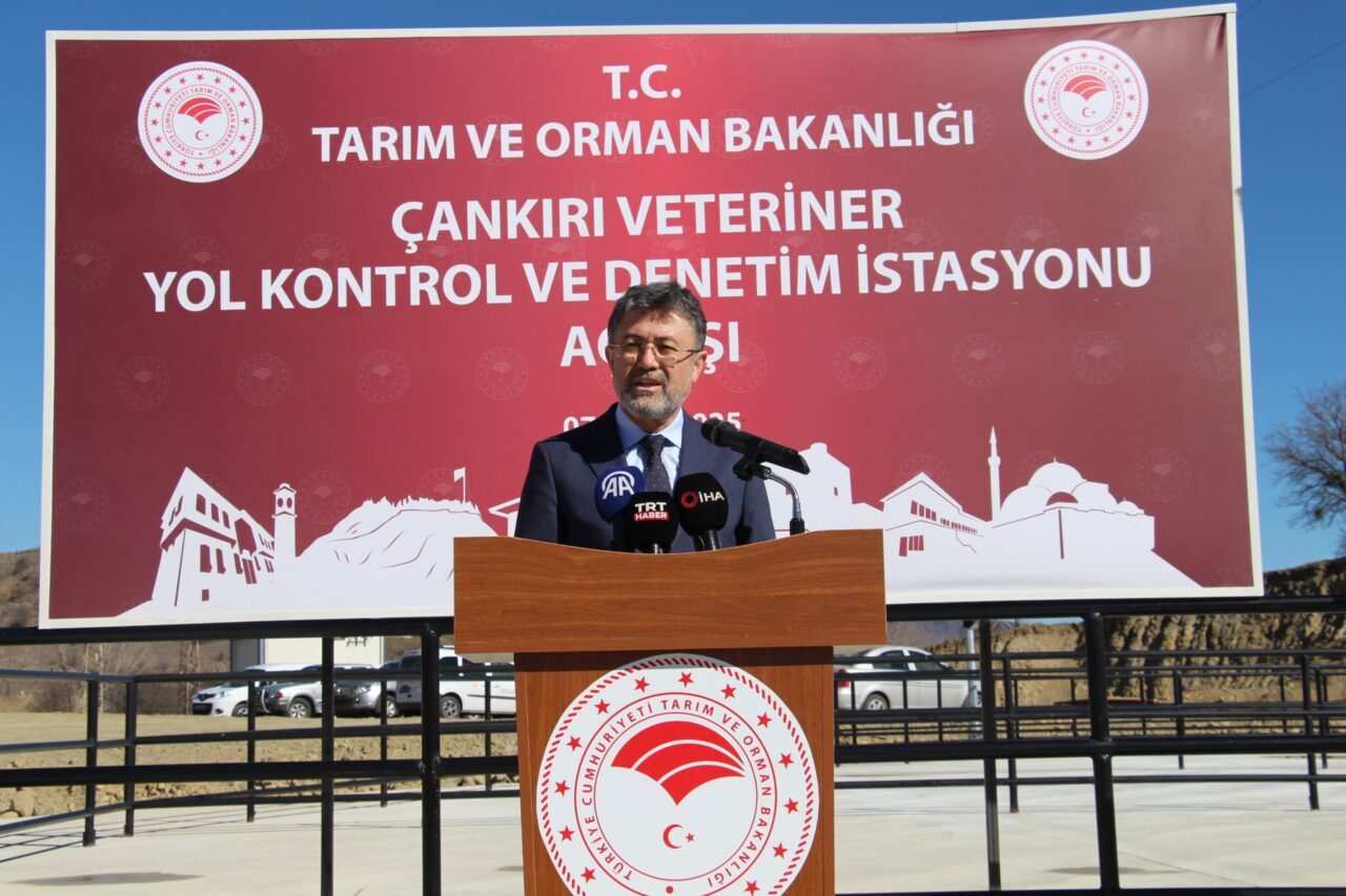 Yumaklı, hayvan sağlığına da son derece önem verdiklerini belirterek, “Hayvancılık yol haritasının diğer bir önemli başlığı da hayvan hastalıklarıyla mücadele. Bugün burada olmamızın da en önemli sebeplerinden bir tanesi bu. Sağlıklı hayvan sağlıklı bir gıda tüketimini ifade eder. Bu kapsamda gıda kontrol genel müdürlüğümüz ve taşra teşkilatındaki bütün arkadaşlarımız el ele vererek hem ekonomimize büyük bir darbe vuran hem de bizlerin amaçlarına hedeflerine ulaşmasını engelleyen hayvan hastalıklarıyla mücadelede bir ciddi eylem başlatmış oldular. Kontrolsüz hayvan hareketlerini engellemek de bunlardan birisiydi. Sağlıksız hayvanların bir yerden başka bir yere sevk edilmesi o hastalığın bütün Türkiye çapında yayılması maalesef hem üretim anlamında hem de ekonomimize getirdiği negatif yük anlamında çok önemliydi. Yol kontrol noktaları da bu manada sağlıklı hayvanların hareketini sağlamak açısından son derece önemliydi. Bunlardan Türkiye çapında çok önemli kavşak noktalarında 8 adet açmış olacağız. İlk 3’ünü açtık, Erzurum, Elazığ ve Ankara’da. 4’üncüsü de bugün burada Çankırı’da açılmış oluyor. Bu 3 istasyonda yani faaliyette bulunan 3 istasyonda 11 bin 682’sini uygun 349 tanesi uygunsuz olmak üzere 12 bin 31 aracın kontrol edildiğini söylemek istiyorum. Tespit edilmiş uygunsuzluklar içerisinde şap hastalığına yakalanmış hayvanlar, maalesef ki sahte veteriner hekim raporlarıyla gözetim ve karantina bölgesinden kaçırılmış hayvanlar vardı” dedi.