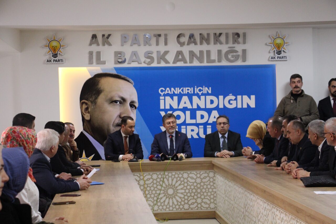 Bakan Yumaklı, Ilgaz’daki programının ardından Çankırı Valiliği’ni ziyaret etti. Bakan Yumaklı, Valilik Şeref Defterini imzaladıktan sonra bir süre Vali Taşolar ve beraberindeki heyet ile görüştü. Yumaklı ardından AK Parti İl Başkanlığı’nı ziyaret etti. Burada İl Başkanı Koray Erdoğan ile görüşen Yumaklı, daha sonra partililerle bir araya geldi. Partililere hitap eden Bakan Yumaklı, terör sorununun ülke gündeminden çıkmak üzere olduğunu belirterek, “40 yıldır ülkemizin yorulduğu, bize çok şeyler kaybettiren terör sorunu da gündemimizden çıkmak üzere. Bütün kurum ve kuruluşlar el ele, omuz omuza verdi, gayret sarf ediyor. Yapılan bu çalışmalarla hepimiz hem ülkemizin terör unsurlarına karşı güvenli hale geldiğini görmüş olacağız hem de yürütülen askeri operasyonların Suriye’nin kuzeyi ve Kuzey Irak’taki terör güçlerinin nefes alamaz duruma getirildiğini de görmüş oluyoruz. Bugüne kadar 23 yıllık AK Parti iktidarında bu ülke için yapılan ne varsa bu ülkenin tarihine altın harflerle nasıl yazıldıysa bu başarı da partimizin medarı iftarı olacaktır. Unutmayalım Türkiye’nin huzuru ve güveni sadece Türkiye’yi ilgilendirmiyor. Aynı zamanda bölgemizin de huzuru güvenliği ve refahı için de elzem nitelikte. Bu meseledeki başarımız bölgemiz üzerinde yürütülen emperyalist planların bozulması anlamına da geliyor” dedi.