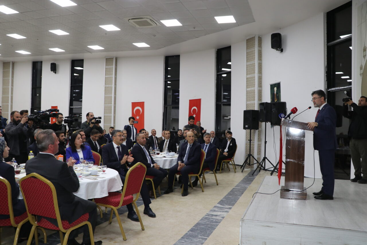 Hakkari’nin Çukurca ilçesindeki programın ardından Tarım ve Orman Bakanı İbrahim Yumaklı, Hakkari merkeze geçti. Valiliği ziyaret eden Bakan Yumaklı’ya Vali Ali Çelik, Hakkari kilimi ve üzerinde valilik logosu bulunan plaket takdim etti. Yumaklı, valilik ziyaretinin ardından öğretmen evinde düzenlenen ‘Hakkari geleneksel iftar’ programına katıldı. Programa, Vali Ali Çelik, AK Parti Hakkari İl Başkanı Zeydin Kaya, AK Parti ilçe ve belde belediye başkanları, kanaat önderleri, muhtarlar ve partililer katıldı. Bakan Yumaklı, memleketin her bir karış toprağına hizmet etmek için geldiklerini belirterek, “Her vatandaşımızın bu memleketin her bir insanın hak ettiği şekliyle bütün hizmetlere kavuşması yolunda çok önemli ve ciddi bir irademiz var. Elbette bunun önünde olan birtakım sebepler vardı. Özellikle Sayın Cumhurbaşkanımızın 22 yıllık liderliğinde gösterdiği gibi, bundan sonra da hem demokrasimizi güçlendireceğiz hem de her alandaki yatırım ve hizmetlerimizi artırarak devam ettireceğiz. Terörün geçtiğimiz süre içerisinde sosyal ve siyasi bütün dayanaklarını yitirdiğini artık hepimiz görüyoruz. Artık herkesin yeter dediği andan itibaren, terörsüz bir Türkiye’nin bütün unsurları artık gerçekleşmiş durumda. Bir dönüm noktası. Bu dönüm noktasının devamı Hakkari’nin, bölgenin, Türkiye’nin bütün illerinin olması gerektiği gibi hizmet almasıdır. İşte bütün bunlara engel olan her türlü unsur ortadan kalktığına göre, terörsüz Türkiye hedefi artık herkesin kafasında, gönlünde bir umut olarak oluştuğuna göre, bundan sonrası artık bizim hizmet etmekle alakalı görevlerimizi yerine getirmemizdir. Bundan sonraki bütün hedefimiz ve gayretimiz oluşturmuş olduğumuz yol haritasını hızlıca hayata geçirmek” dedi.