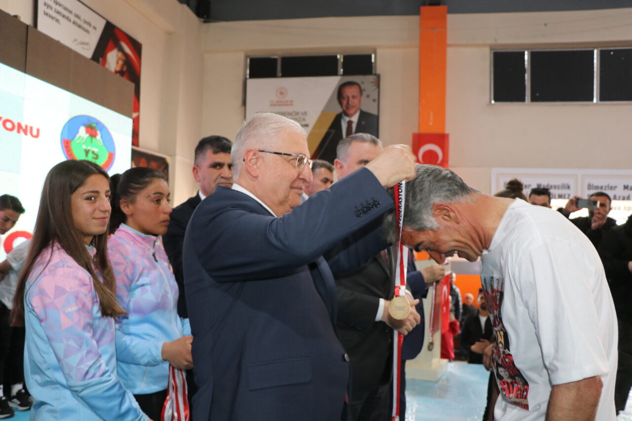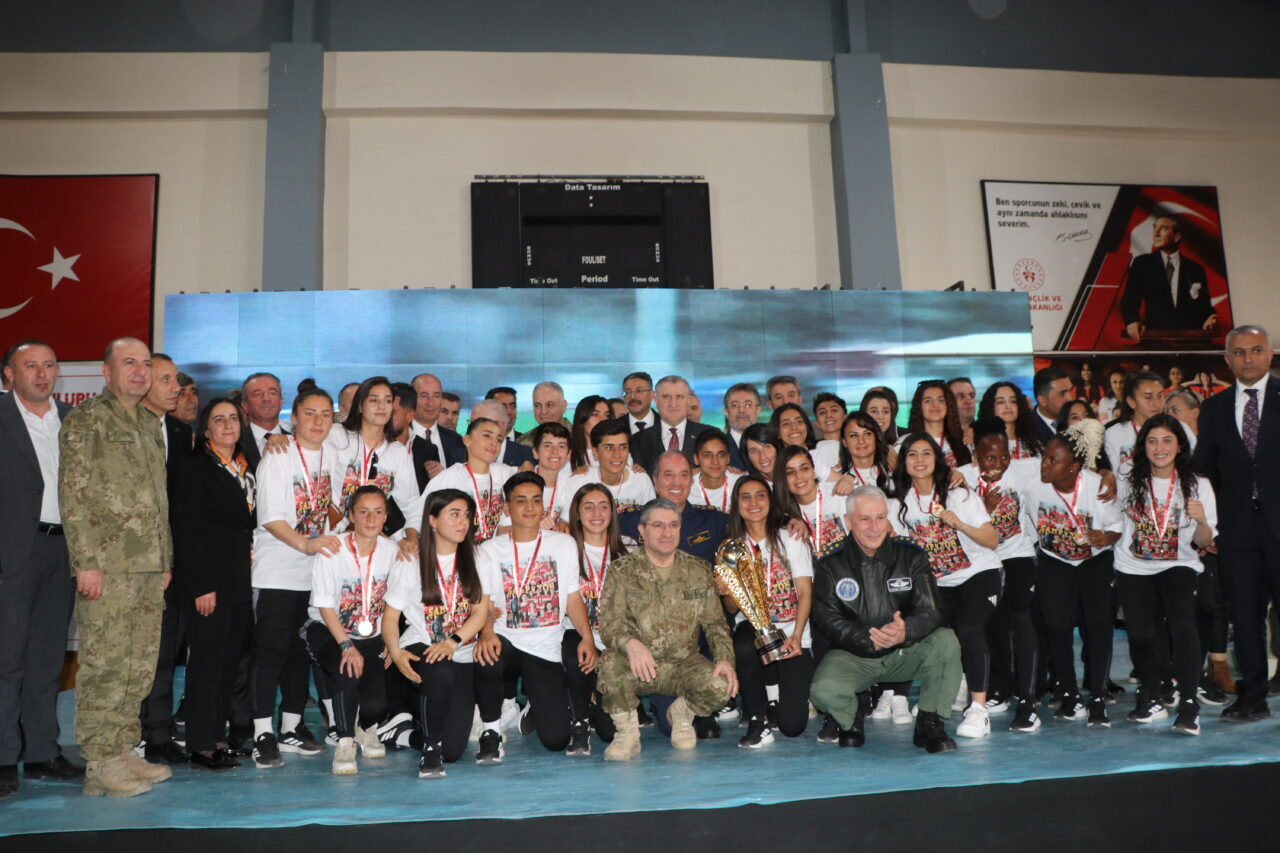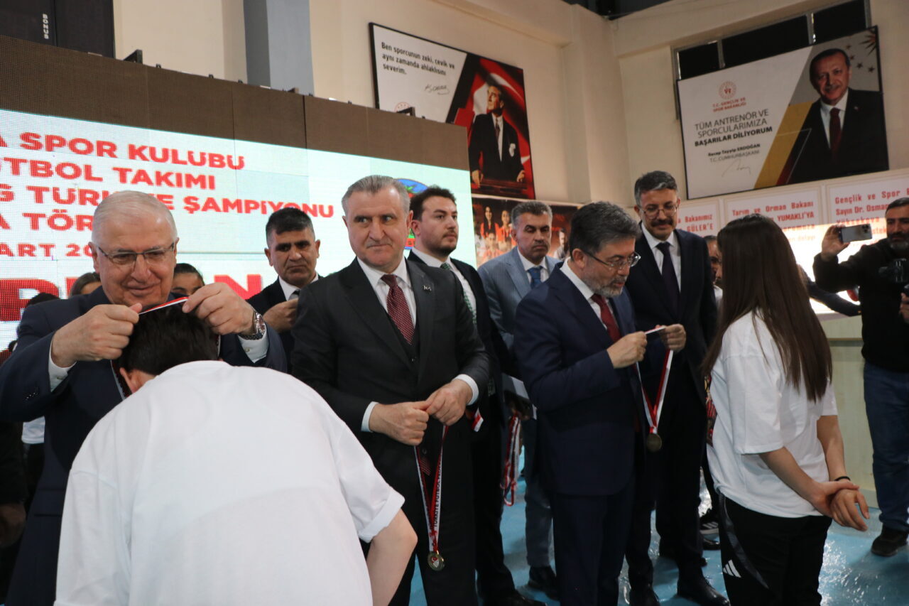 Törende konuşan Milli Savunma Bakanı Yaşar Güler, geçen yıl 2’nci Lig’den 1’nci Lig’e, bu yıl da Süper Lig’e çıkan Yüksekova Spor Kadın Futbol Takımı’nı başarısından dolayı kutladıklarını belirtti. Yüksekova Spor’un tarihe geçtiğini söyleyen Bakan Güler, “Ben de 1’inci Lig ve Play-Off maçlarınızı çok yakından ilgiyle ve heyecanla takip ettim. En son zaferi getiren pazar günkü maçta üstün bir performans sergilediniz. Sizlerle ne kadar gurur duyduğumuzu da bir kez daha ifade ediyorum. Elbette bu başarının arkasında kulüp yöneticilerinin, teknik ekibin ve kıymetli ailelerinizin de büyük payı var. Bu vesileyle takımınızın başarısı için büyük emek sarf eden başkanımıza, antrenörlerimize ve değerli ailelerinize de özellikle teşekkür ediyorum. Değerli evlatlarım, sizlerin başarısı yalnızca bir kupa kazanmak değildir. Bu Yüksekova’dan yükselen umut dolu bir başarı hikayesinin ve kadınların sahada olduğu kadar hayatta da ne kadar güçlü olabileceklerinin bir ispatıdır. Sizler sadece birer sporcu değil, aynı zamanda rol modelsiniz. Çocuklara, genç kızlarımıza hatta yetişkinlere ‘Ben de yapabilirim’ dedirten bir ilham kaynağı oldunuz. Öyle ki elde ettiğiniz sportif başarılar kızlarımızın ve kadınlarımızın spora katılımını teşvik ediyor. Onlara örnek oluyorsunuz” dedi.