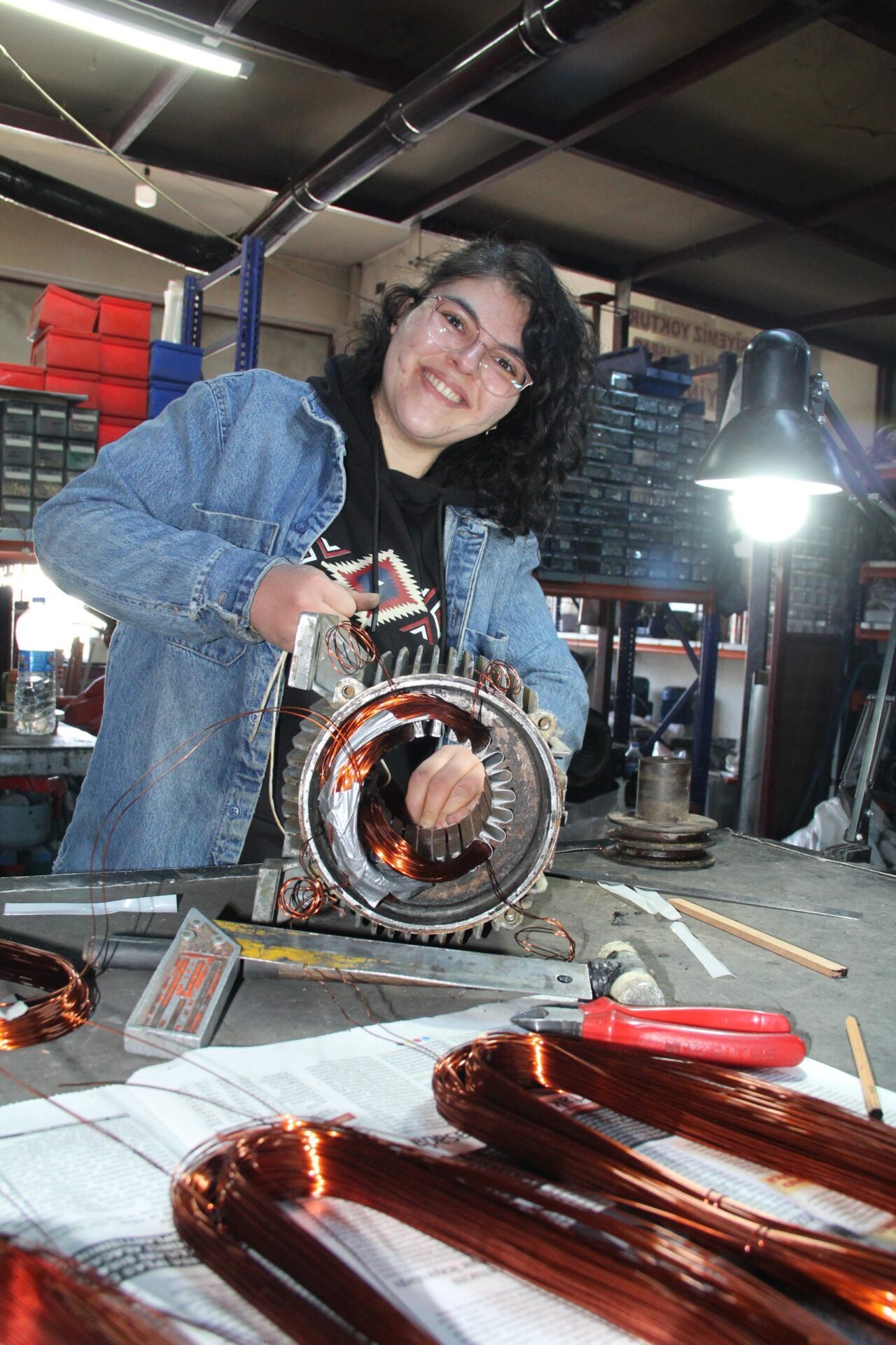Erzincan Sanayi Sitesi’nin tek kadın ustası olan İlknur Uludoğan, bir taraftan atölyede çalışırken diğer yandan staja gelen öğrencileri de yetiştiriyor. Yüksek lisans yaparak alanında kendisini daha da geliştiren Uludoğan, “Elektrik-elektronik mühendisiyim. 15 yıldır mesleğimi yapıyorum. Sanayide kendime ait bir atölyem var. Dededen gelen mesleğimi sürdürüyorum. Mesleği sevdiğim için bu alanda çalışıyorum. Burada birçok öğrenci yetiştiriyorum. İlk başta buraya geldiğimde insanlar bir garipsedi. Sanayide ‘Kadınların ne işi var’ diye bakılıyordu. Benden sonra buradaki kadın personel sayısı da artmaya başladı. Kadın olduğu yerde temizlik, tertip, düzen, nezaket, kibarlık oluyor. O yüzden cinsiyet ayrımı yapmaksızın her yerde her işi yapabiliriz. İstediğimiz zaman her şeyin en güzelini yapabiliriz. Hiçbir şekilde korkmayın, çekinmeyin. Kadın isterse her şeyi yapar. Bir kadının kafasına koyduğu zaman yapamayacağı hiçbir şey yoktur. Kadın isterse her şeyi yapar. Bunun en bariz örneği benim” diye konuştu.