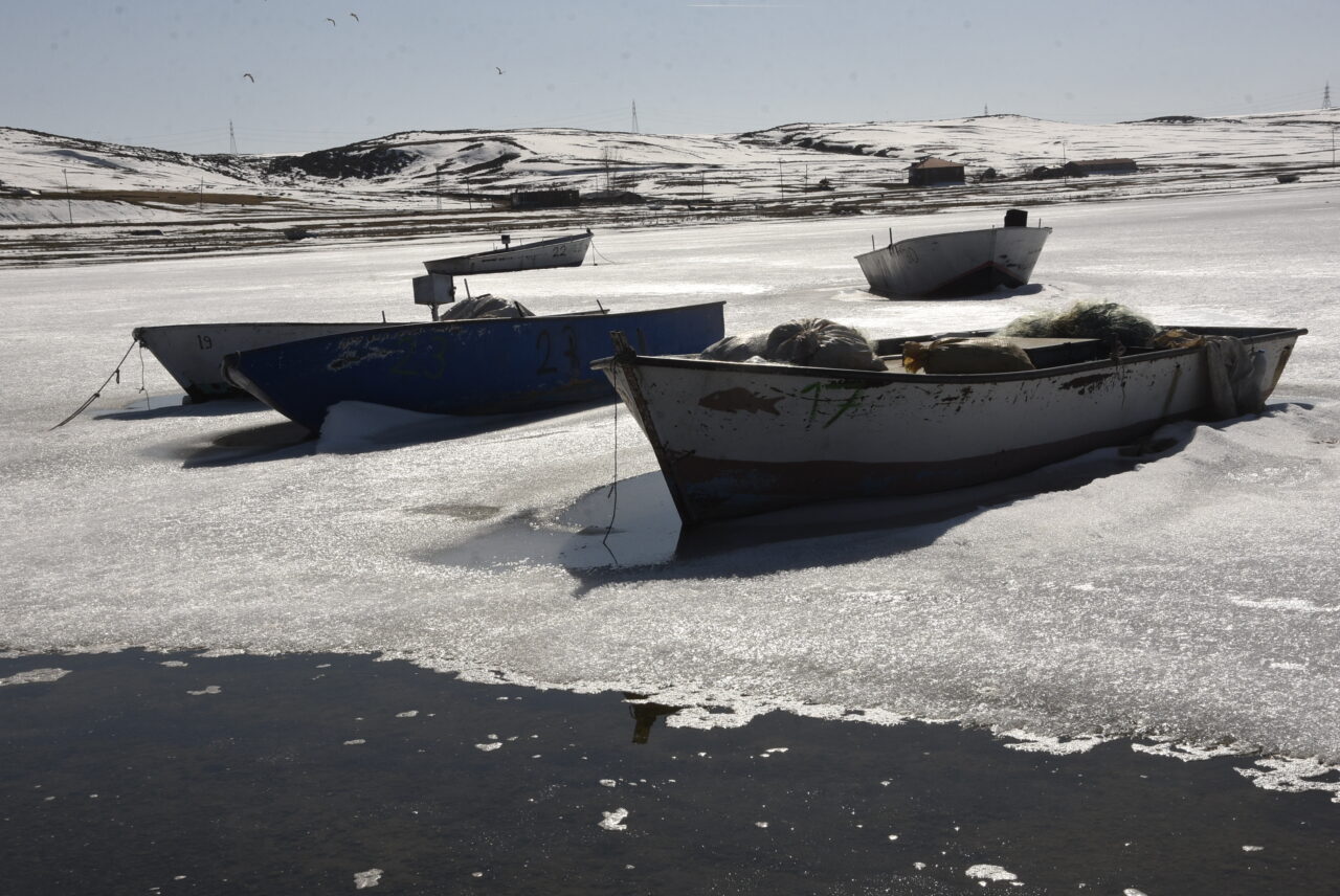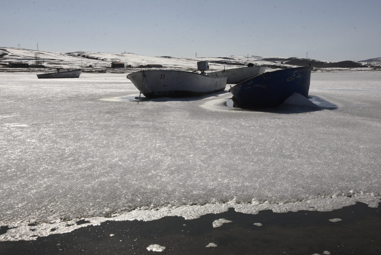 Özcan ÇİRİŞ/BİTLİS, – BİTLİS’in Ahlat ilçesinde donan Nazik Gölü, havaların
