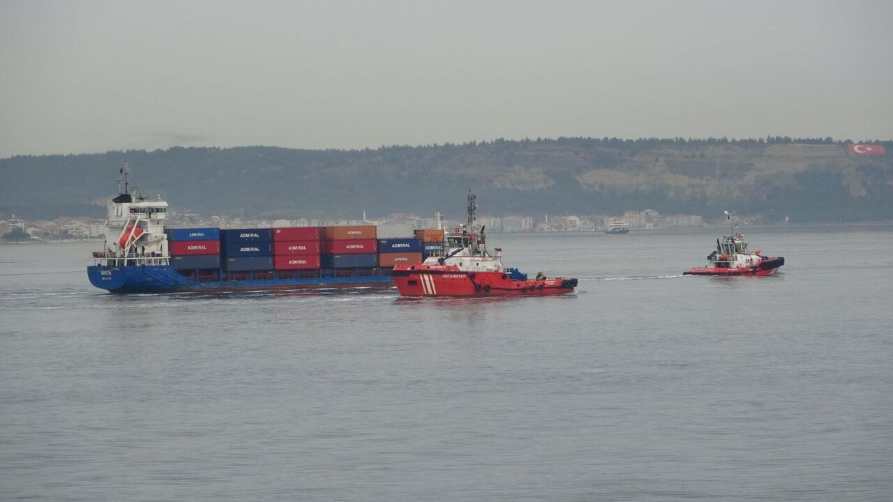 Nazif Cemhan ŞEN/ÇANAKKALE, – ÇANAKKALE açıklarında 6 gün önce makine arızası yapan Belize bayraklı konteyner gemisi, römorkör tarafından yedeklenerek boğazdan geçti.
