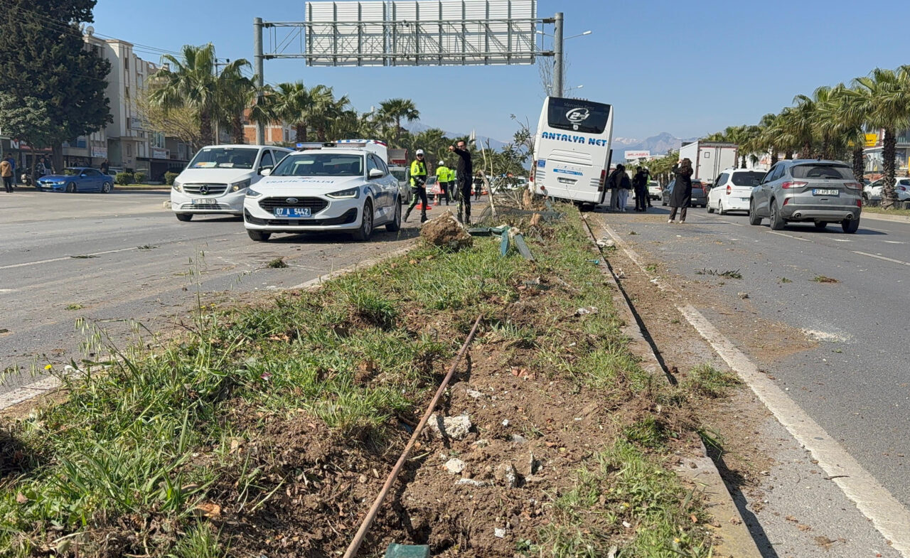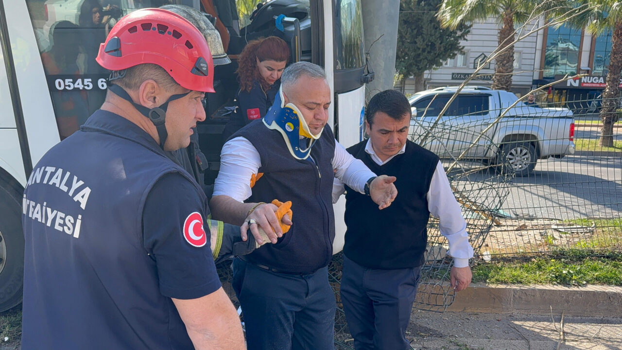 Kaza, saat 11.00 sıralarında Kepez ilçesi Emek Mahallesi Gazi Bulvarı’nda meydana geldi. Alanya’dan aldığı yolcularla İstanbul’a gitmek üzere olan Aydın Doğan idaresindeki 07 BSU 717 plakalı şehirlerarası yolcu otobüsü, direksiyonu kilitlenince refüje çıktı. Yaklaşık 50 metre refüjde sürüklenen ve demir bariyerlerle ağaçları kökünden söken otobüs, EDS direğine çarptı. Otobüs şoförü Doğan, sürücü koltuğunda sıkışırken, araçtaki 3 yolcu ile yedek şoför Tekin Yılmaz kazayı yara almadan atlattı. Çevredekilerin ihbarı üzerine kaza yerine sağlık ve itfaiye ekipleri sevk edildi. İtfaiye ekibi, Aydın Doğan’ı bulunduğu yerden çıkarttı. Doğan ambulansla hastaneye kaldırıldı.