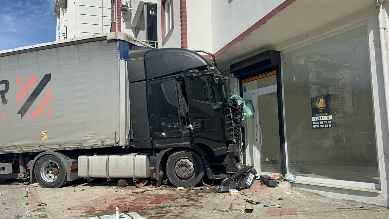 Mehmet YİRUN-Mehmetcan ARSLAN/ÇORLU (Tekirdağ), – TEKİRDAĞ’ın Çorlu ilçesinde, sürücüsünün kontrolünü yitirdiği TIR, boş dükkana çarptı. Sürücü Turhan Göçmen’in yaralandığı kaza, güvenlik kamerasına yansıdı.