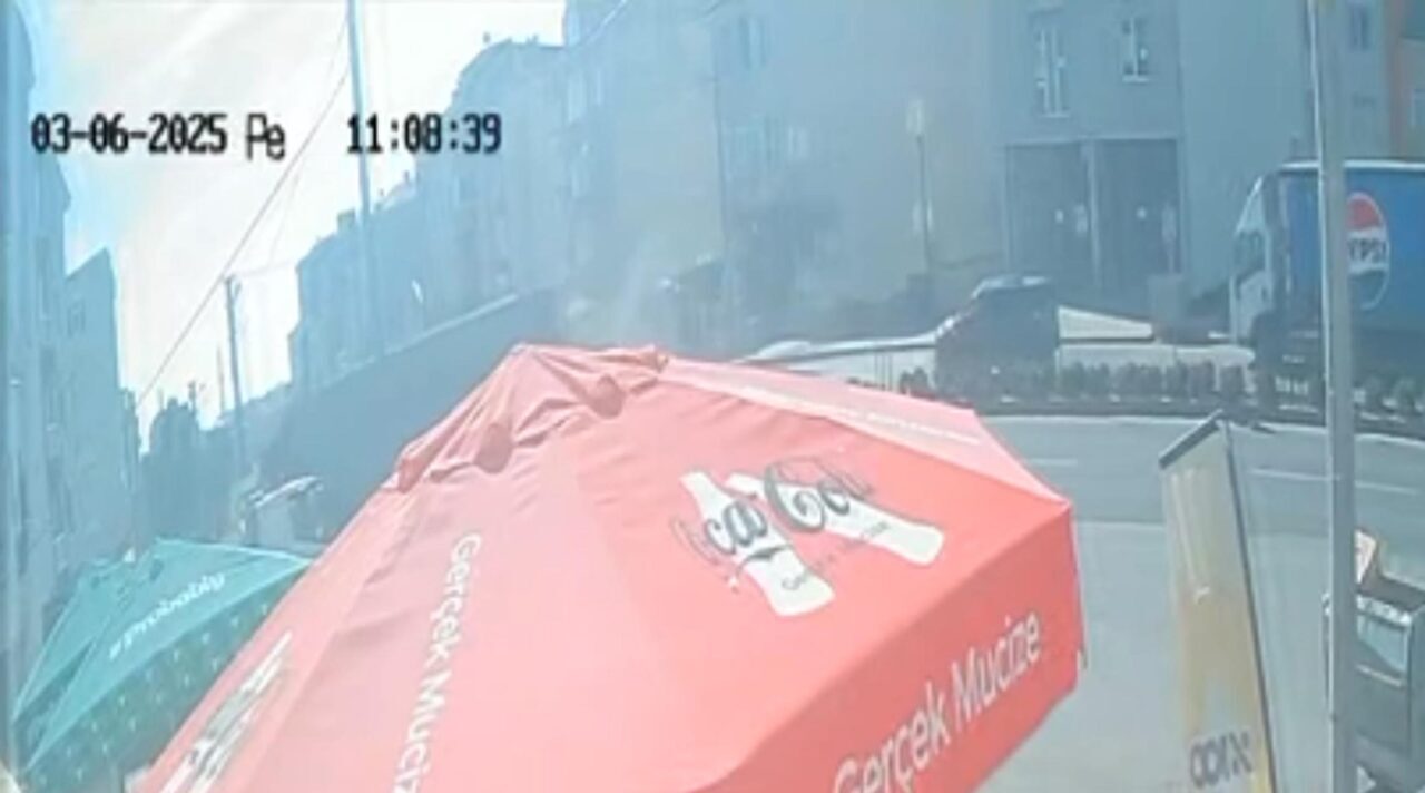 Bölgedeki iş yerinin güvenlik kamerasına yansıyan kazaya ilişkin polisin incelemesi sürüyor.