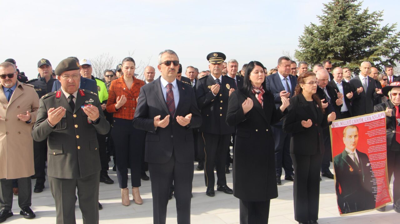 Edirne’de 26 Mart Balkan Şehitlerini Anma Günü’nün 112’nci yılında Şükrü Paşa Anıtı’nda tören düzenlendi. Balkan Savaşları sırasında kenti savunan, ordunun başında bulunan Şükrü Paşa’nın mezarının da bulunduğu anıttaki törene Edirne Valisi Yunus Sezer, Garnizon Komutanı Tuğgeneral Yüksel Kolcu, Edirne Belediye Başkanı Filiz Gencan Akın, Edirne Şehit Aileleri Yardımlaşma ve Dayanışma Derneği Başkanı Leyla Vardar Karaduman, kamu kurum ve kuruluşlarının yöneticileri, siyasi parti temsilcileri, gaziler, öğretmenler ve öğrenciler katıldı. Anıta çelenk konulmasının ardından saygı duruşunda bulunuldu, İstiklal Marşı okundu. Selimiye Camisi İmam Hatibi Yusuf Serenli tarafından Kuran-ı Kerim tilaveti ve İl Müftüsü Ercan Aksu da şehitler için dua okudu. Ardından protokol üyeleri gaziler ve öğrenciler tarafından Şükrü Paşa Anıtı’nda bulunan Edirne Müdafii Mehmet Şükrü Paşa’nın kabrine karanfil bırakıldı.