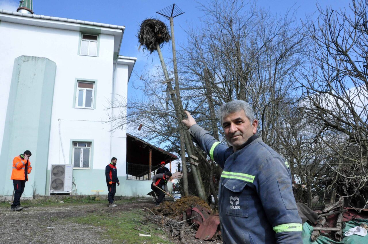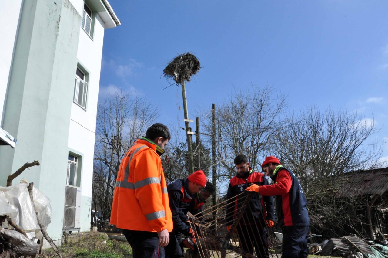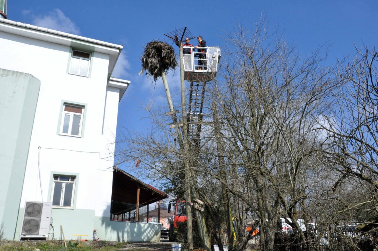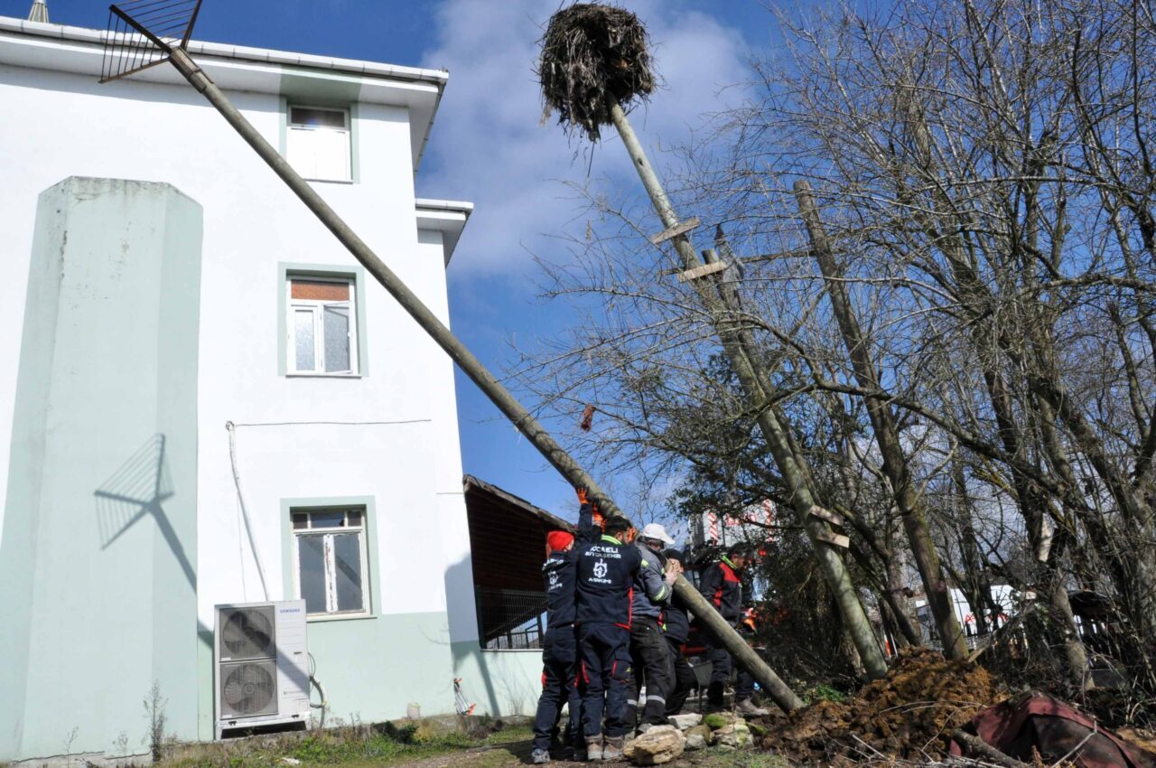 Kandıra ilçesinin kırsal Kocakaymaz Mahallesi’nde leylek yuvasının bulunduğu direk, bir süre önce rüzgar nedeniyle eğildi. Yıkılma tehlikesi de bulunan direği gören Harun Ergin, durumu 153 Çağrı Merkezi üzerinden Kocaeli Büyükşehir Belediyesi ekiplerine bildirdi. Belediyesi Yol ve Bakım Dairesi’ne bağlı A Takımı ekipleri, kısa süre içinde olay yerine giderek, leylek yuvasının bulunduğu telefon direğinin bakımını yaptı. Bakım sırasında dikkatle yerinden alınan yuvadaki dal parçalarının temizlenmesinin ardından yapılan yeni yuva, özenle yerine yerleştirildi.