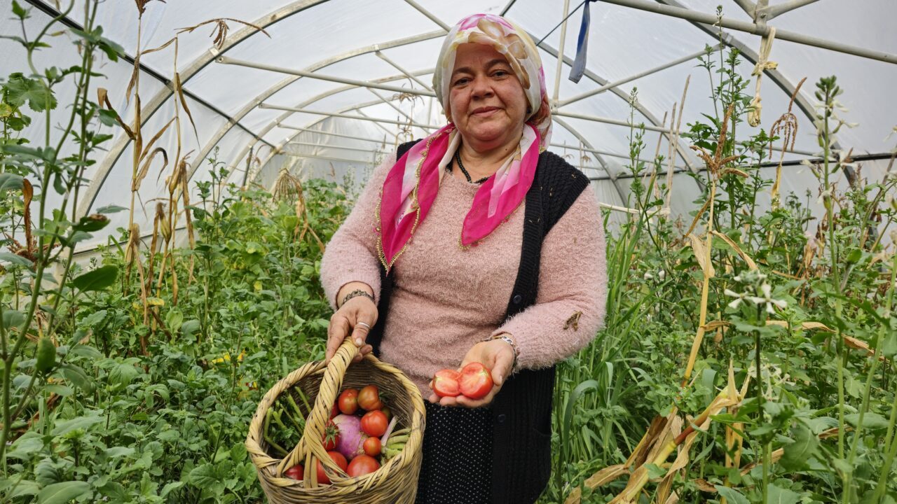 Alican GÜMÜŞ/HATAY, – HATAY’da, Süheyla Özkurt (47), eşi rahatsızlıkları nedeniyle çalışamayacak duruma gelince, 2 dönümlük tarlalarını seraya çevirdi. Yetiştirdiği ürünleri satıp 2 çocuğunu büyüten, hasta eşine bakan ve 18 yıldır ailesinin geçimini sağlayan Özkurt, “Kadın isterse her şeyi yapar” diye konuştu.