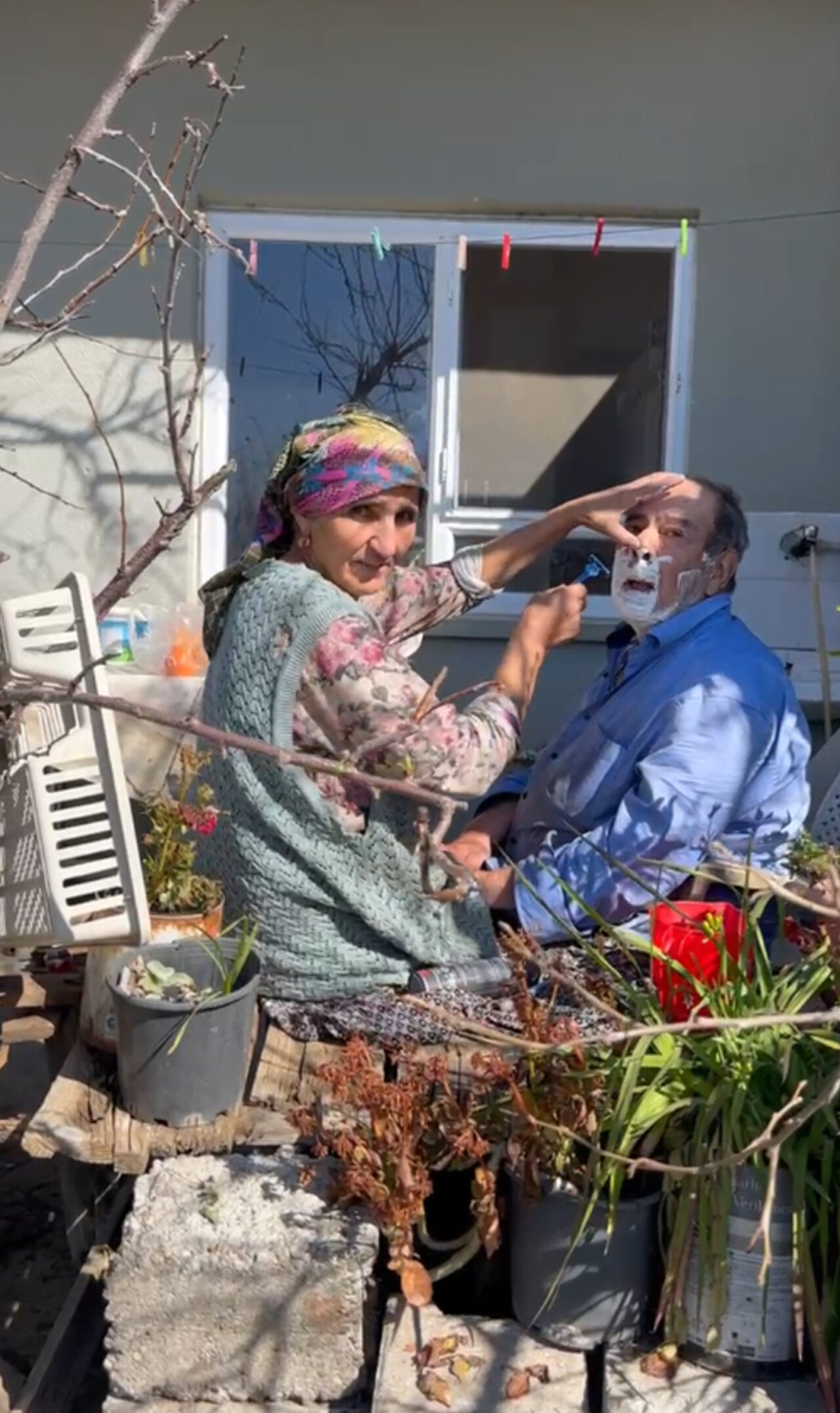 Serik ilçesi Cumalı Mahallesi’nde oturan Zehra Ekşili, sağ kolu felçli eşi Salih Ekşili’yi (71) evinin bahçesinde tıraş etmeye başladı. Bu sırada yoldan geçen Mehmet Can, çiftin bu anlarını cep telefonu ile görüntüledi. Ekşili çifti ile sohbet eden Mehmet Can, “Bugün 8 Mart Dünya Kadınlar Günü. Kadınların hakkı ödenir mi?” diye sordu. Zehra Ekşili ise Kadınlar Günü’nden haberdar olmadığını söyledi. Zehra Ekşili, eşini felçli olduğu için kendisinin tıraş ettiğini anlattı. Sosyal medyada paylaşılan görüntüler ilgi topladı.