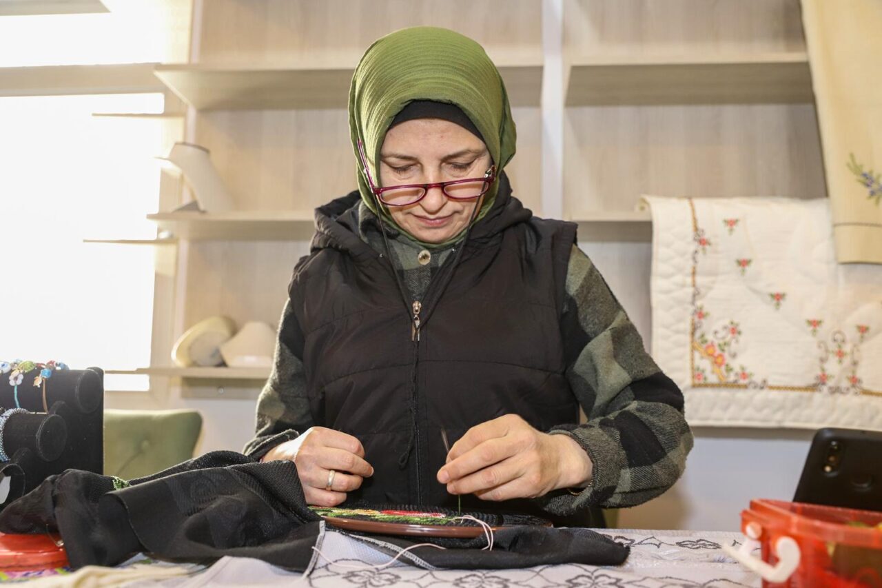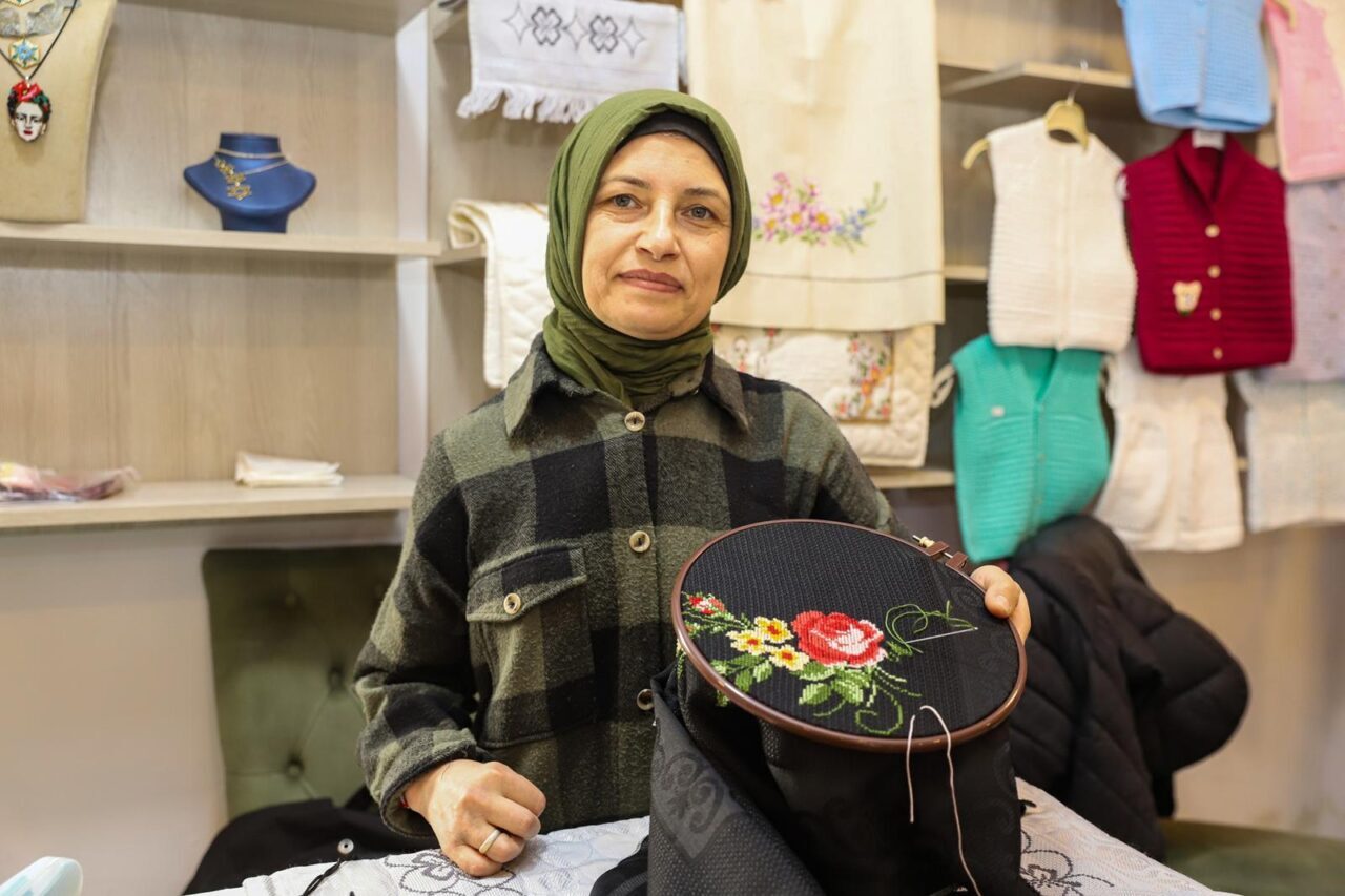 Emrah GEMİCİOĞLU/ORDU, -ORDU’da felç olduğu için sağ kolunu kullanmayan Günay Kılıç (47), engelini aşarak el işleri yapıp, Büyükşehir Belediyesi’nin ‘El Emeği Çarşısı’nda satıp, aile ekonomisine katkı sağlıyor.