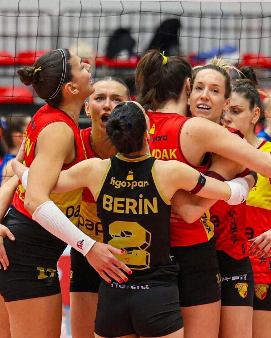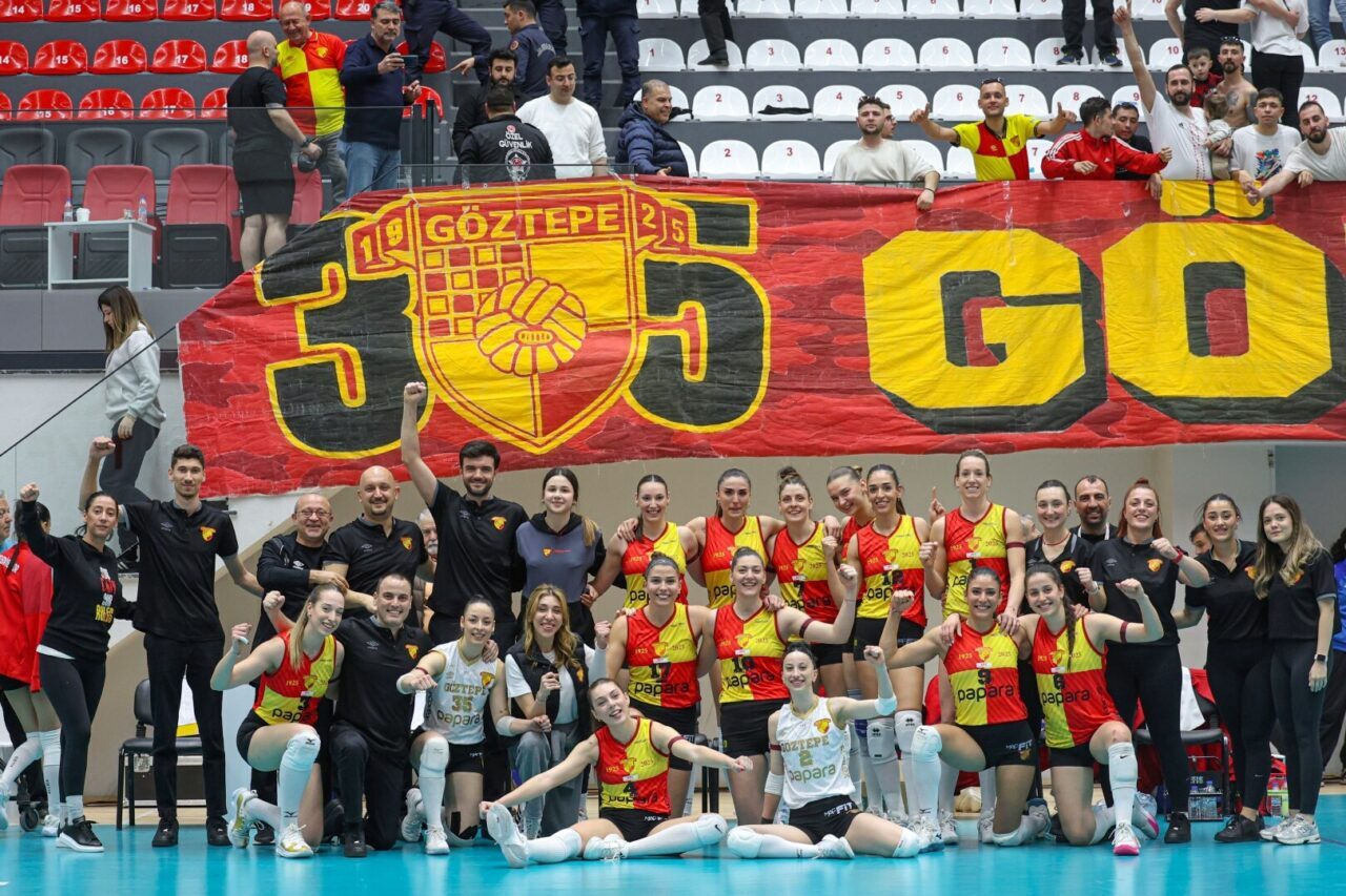 Mustafa KÖPRÜLÜ / İZMİR, – KADINLAR Voleybol 1’inci Ligi A Grubu’nda normal sezonu liderlik koltuğunda tamamladıktan sonra Play-Off yarı finalde çıktığı ilk 2 maçı kazanan Papara Göztepe adını Final Etabı’na erken yazdırmanın sevincini yaşıyor. Alanya’da oynanan yarı final müsabakalarında Bozüyük Belediyesi Eğitimspor’u 3-1, Bolu Belediyespor’u 3-0 mağlup eden sarı-kırmızılı takım, 1 maç kala finali garantiledi.