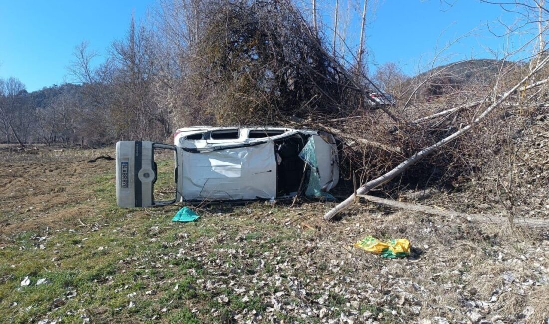 Zübeyde ÖZMEN/MUDURNU,(Bolu), – BOLU’da, takla atarak tarlaya savrulup yan yatan hafif ticari aracın sürücüsü Arif D. ile yanındaki babası Servet D., yaralandı.