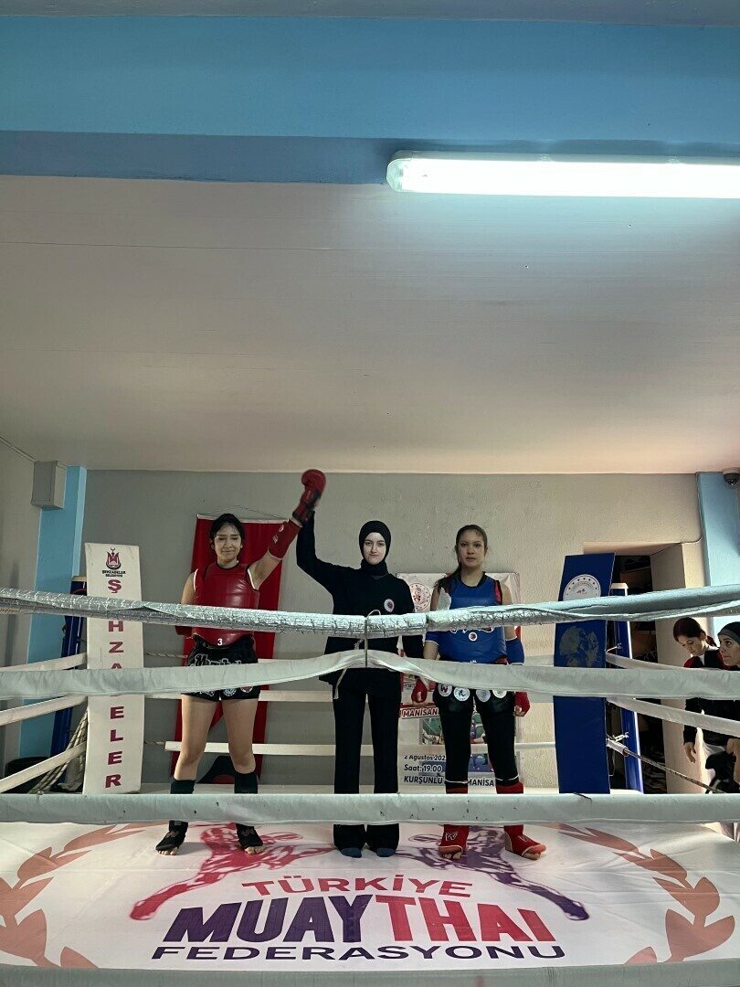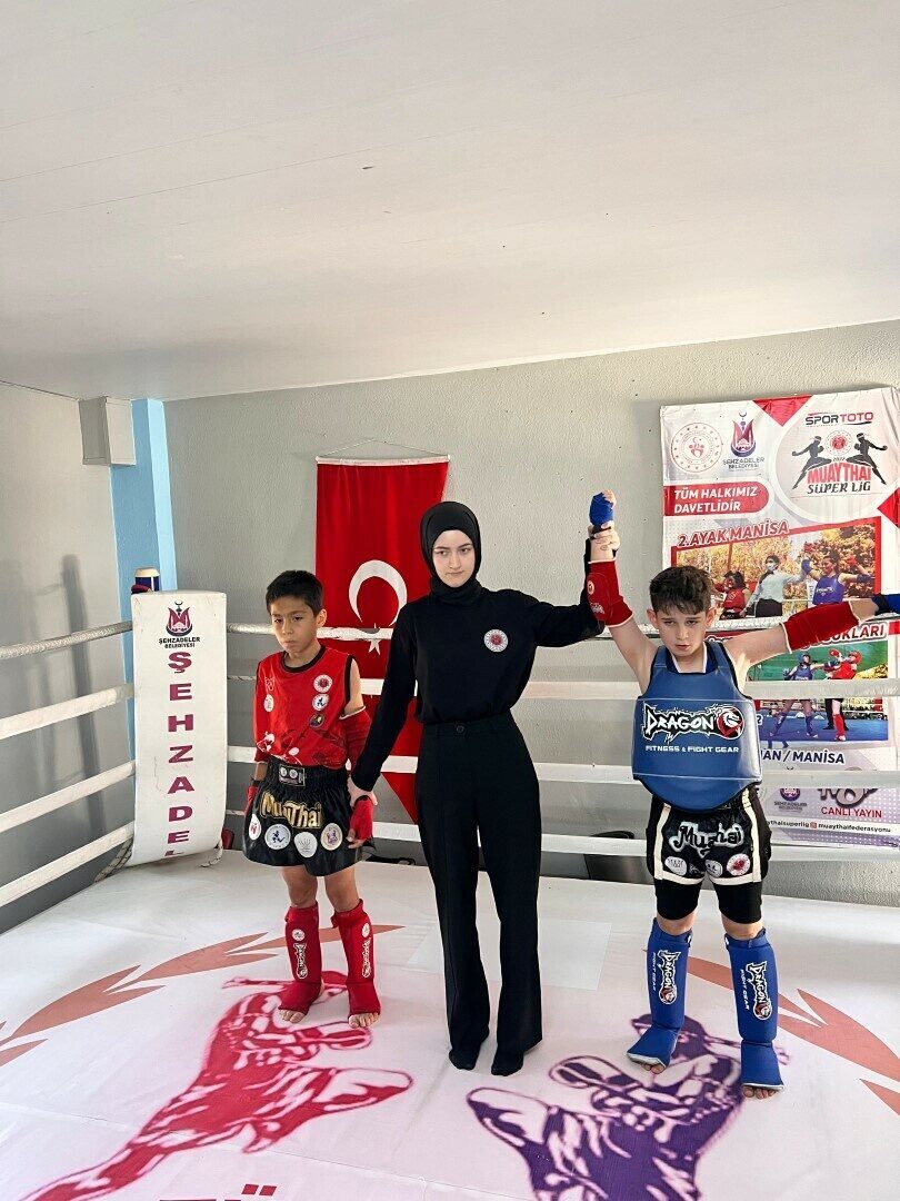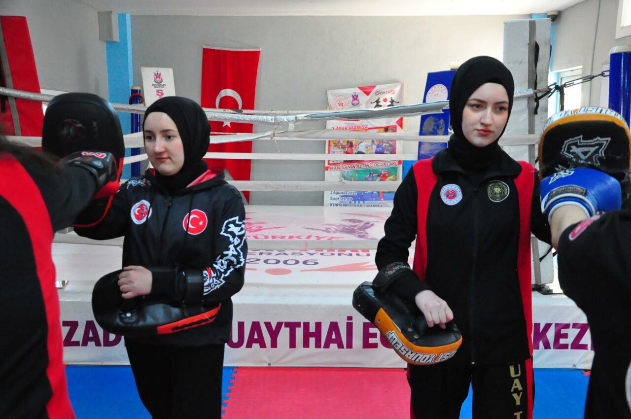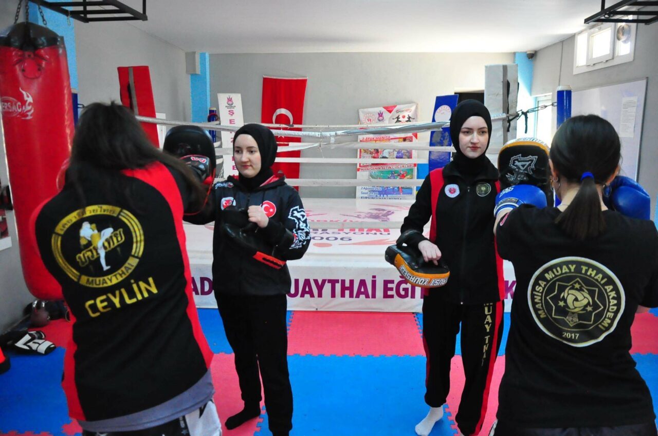 Ersan ERDOĞAN/MANİSA, – MANİSA’nın Şehzadeler ilçesinde 9 yıl önce muay thai sporuna başlayan Ayşenur (25) ve Gülahsen Boz (24) kardeşler, önce antrenör ardından il hakemi oldu. Manisa Muaythai Eğitim Merkezi’nde antrenörlük yapan Boz kardeşler, milli sporcu yetiştirmeyi hedefliyor.