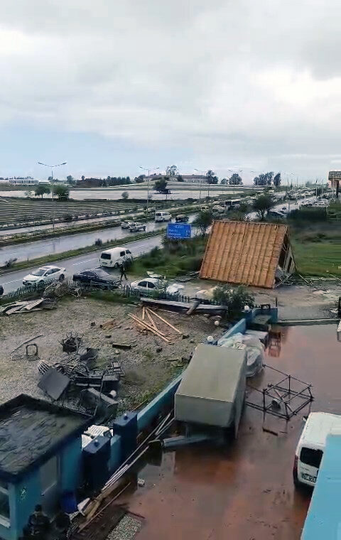Manavgat’ta akşam saatlerinde başlayan sağanak, gün içerisinde etkili oldu. Bugün saat 11.30 sıralarında çıkan hortum, bir mobilya satış mağazası önünde bulunan 2 ton ağırlığındaki üçgen evi otomobillerin üzerinden uçurup, 30 metre ileride ters döndürdü. Hortumun havalandırdığı bir minibüs de otomobilin üzerine düştü. Olay yerine Antalya Büyükşehir Belediyesi İtfaiyesi Manavgat Birimi, Manavgat İlçe Jandarma Komutanlığı Side Jandarma Karakolu, Manavgat Belediyesi Afet İşleri Müdürlüğü ve Manavgat Kaymakamlığına bağlı ekipler sevk edilirken, hasar tespit çalışmalarına başlandı.