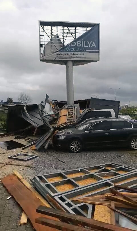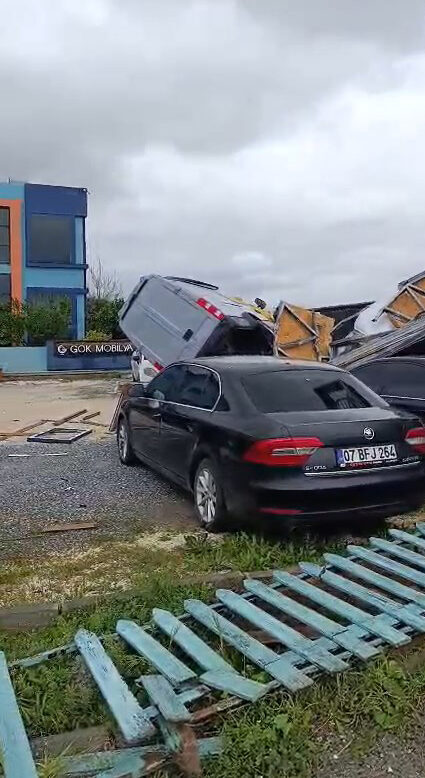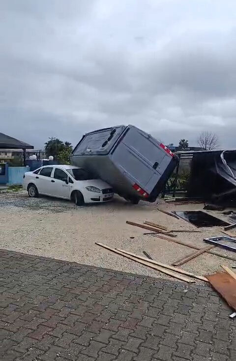 Mithat ABAKAN/MANAVGAT (Antalya), -Antalya’nın Manavgat ilçesinde gece saatlerinde başlayan ve sabah etkisini artıran sağanak, günlük yaşamı olumsuz etkiledi. Çıkan hortum da bir iş yeri önündeki minibüsü havalandırıp, otomobilin üzerine attı.
