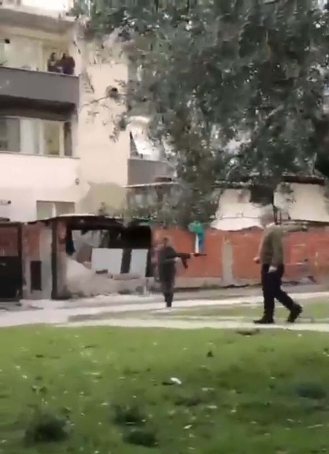 Olay, dün öğle saatlerinde Kemalpaşa ilçesi Armutlu 85. Yıl Cumhuriyet Mahallesi’nde meydana geldi. Husumetli iki aile arasında çıkan tartışma, kavgaya dönüştü. Kavga sırasında F.T., elindeki tüfekle ateş açtı. O anlar cep telefonu kamerasına yansırken, çevredekiler durumu jandarma ekiplerine bildirdi. İhbarla olay yerine gelen jandarma ekipleri, kavgayı ayırdı. B.T.’nin olay yerine getirdiği bıçak ile av tüfeğine el konuldu. Kolundan hafif yaralanan 1 kişi Kemalpaşa Devlet Hastanesi’ne kaldırılırken, 14 şüpheli gözaltına alındı. Şüphelilerin jandarmadaki işlemleri sürerken, yaralının taburcu edildiği öğrenildi