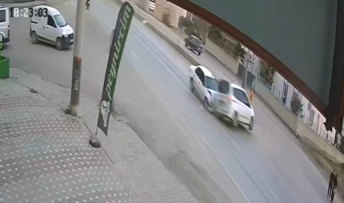 Ali GÖKDAL/KOZAN (Adana), – ADANA’nın Kozan ilçesinde iki otomobilin çarpıştığı kazada 2 kişi yaralandı. Kaza anı bir iş yerinin güvenlik kamerasına yansıdı.