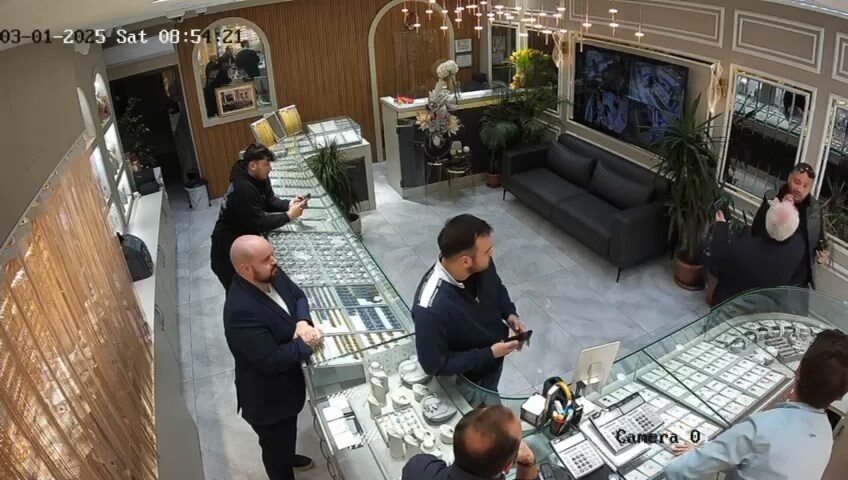 Şüphelinin kuyumcuya sahte altın satmaya çalıştığı anlar güvenlik kamerasına yansıdı. Görüntülerde, altınların sahte olduğunun anlaşıldığı, bunun üzerine şüphelinin kaçmaya çalıştığı ve çalışanlarla arasında arbede çıktığı anlar yer alıyor.