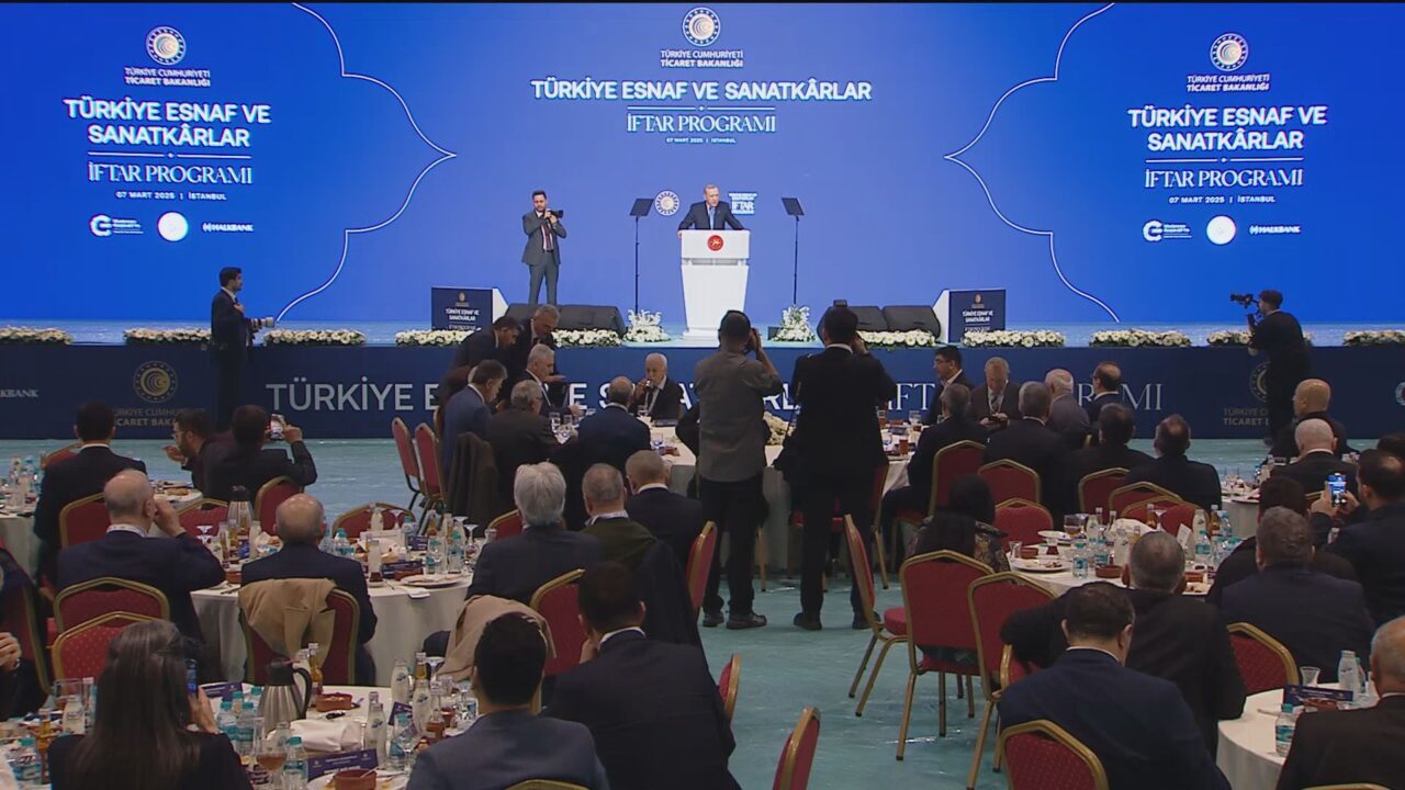 Cumhurbaşkanı Recep Tayyip Erdoğan, Yenikapı Kadir Topbaş Gösteri ve Sanat Merkezi’nde düzenlenen Türkiye Esnaf ve Sanatkarlar İftarı’na katıldı. Programa Cumhurbaşkanı Erdoğan ile birlikte Ticaret Bakanı Ömer Bolat ve çok sayıda davetli de katıldı. Programda konuşan Cumhurbaşkanı Erdoğan, esnaf ve sanatkarların ekonomideki rolüne vurgu yaparak finansmana erişim, ticari araç finansmanı ve kredi maliyetlerini kapsayan yeni müjdelerini esnaflarla paylaştı.
