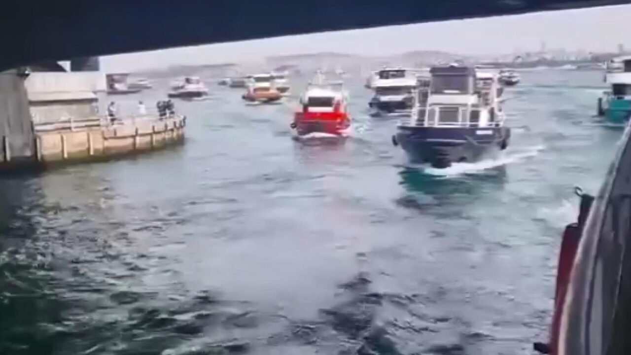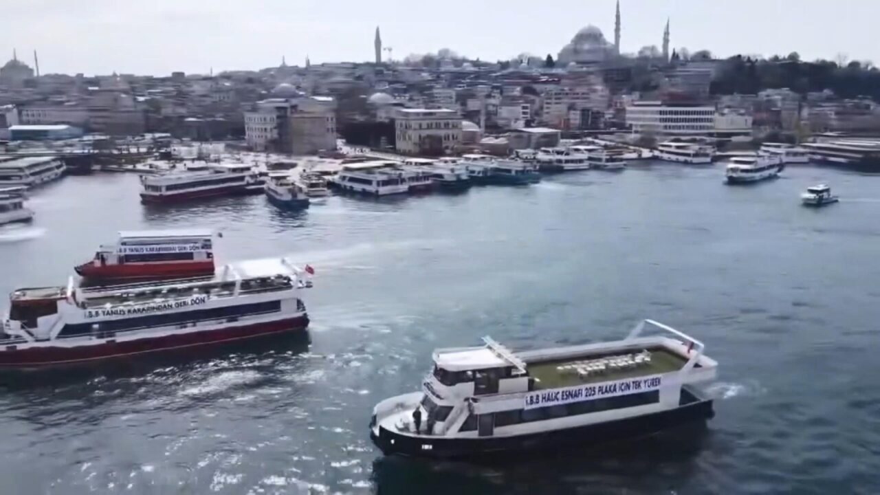 Doğan Can CESUR / İSTANBUL – HALİÇ’te 50 tekne sahibi protesto gösterisi düzenledi. Tekne sahiplerinin UKOME toplantısında görüşülmesini beklediği, 203 adet tekne plakasının iptal edilmesiyle ilgili madde protesto edildi. Protesto anları havadan da görüntülendi.