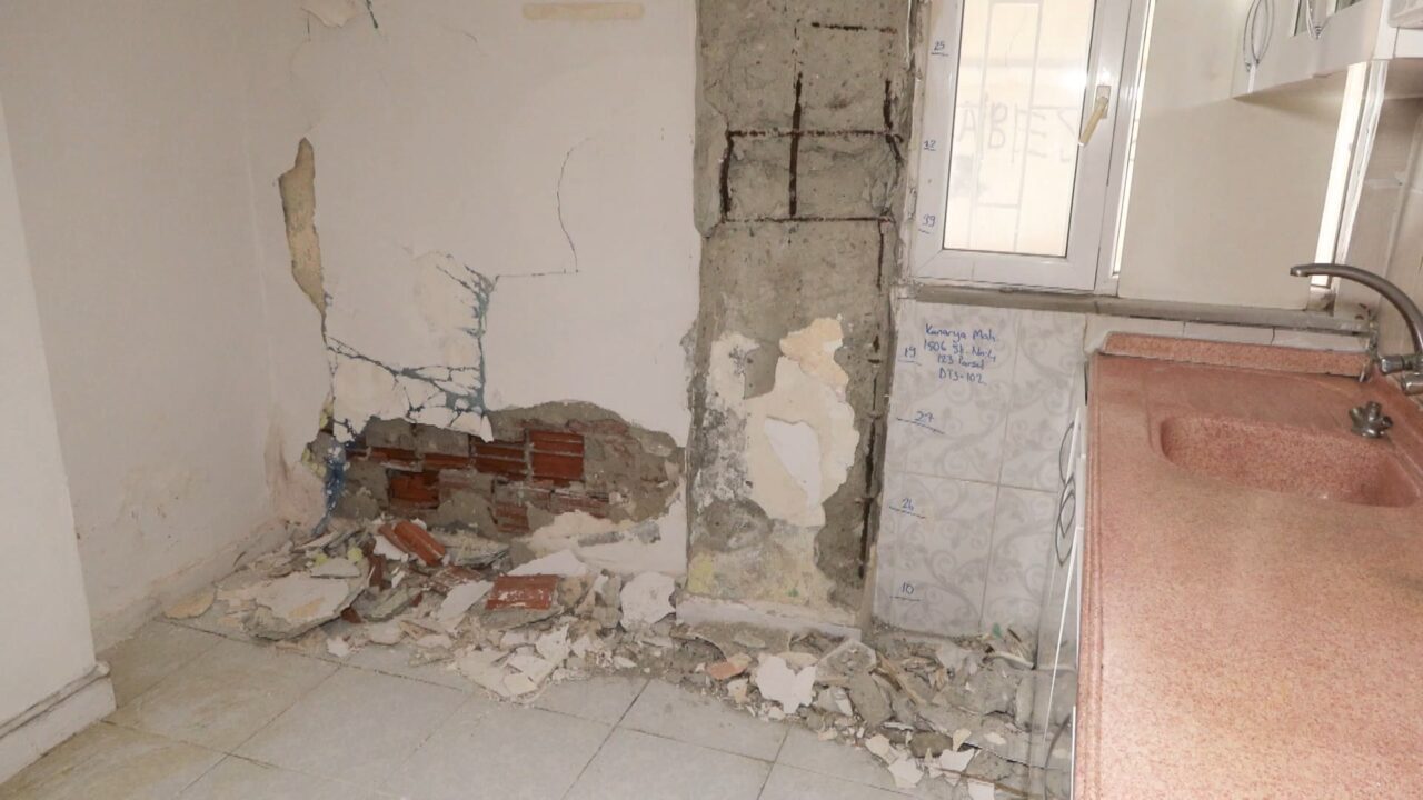 Kanarya Mahallesi 1506 Sokak’ta bulunan 8 katlı 16 daireden oluşan binada oturan bir kişinin şikayeti üzerine yapıdan karot örneği alındı. İstanbul Aydın Üniversitesi’nden görevlendirilen bilirkişi heyetinin incelemelerinin ardından 30 yıllık binanın depreme dayanıksız ve sağa doğru eğimli olduğuna ilişkin rapor hazırlandı. 28 Şubat’ta tahliye kararı çıkartılan binada 3 Mart’ta zabıta ekipleri tarafından kontrol edilerek boşaltıldı. Ancak iddiaya göre, ev bulamadığı için binanın mührünü söküp binada bir süredir yaşamaya devam eden Suriyeli aile, zabıta ekipleri tarafından 6 Mart Perşembe günü saat 16.00’a kadar süre verilerek binadan çıkarıldı.