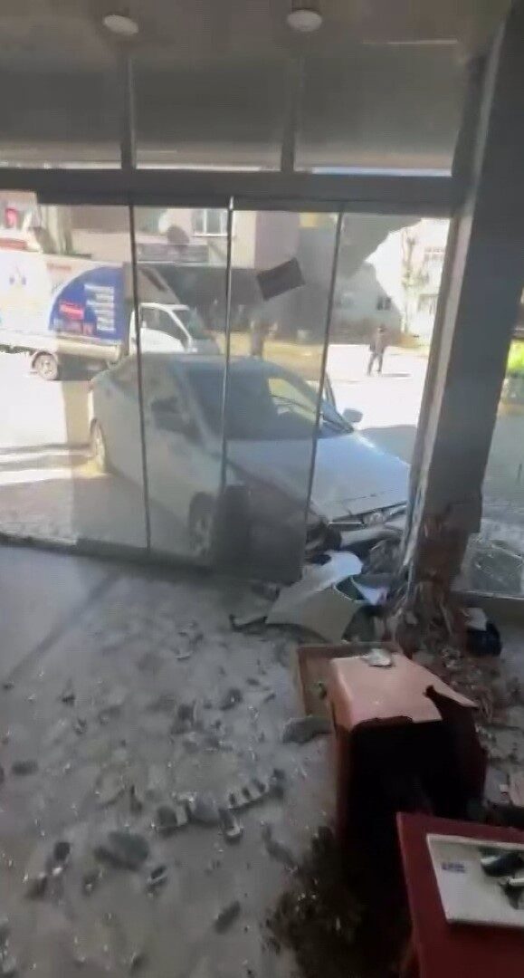 Murat SOLAK / İSTANBUL, -SANCAKTEPE’de ara sokaktan caddeye çıkarken kazaya karışan otomobil, kaldırıma çıkarak iş yerine girdi. Kazada sürücü Arife Numanoğlu yaralanırken, kaza anı güvenlik kamerasına yansıdı.