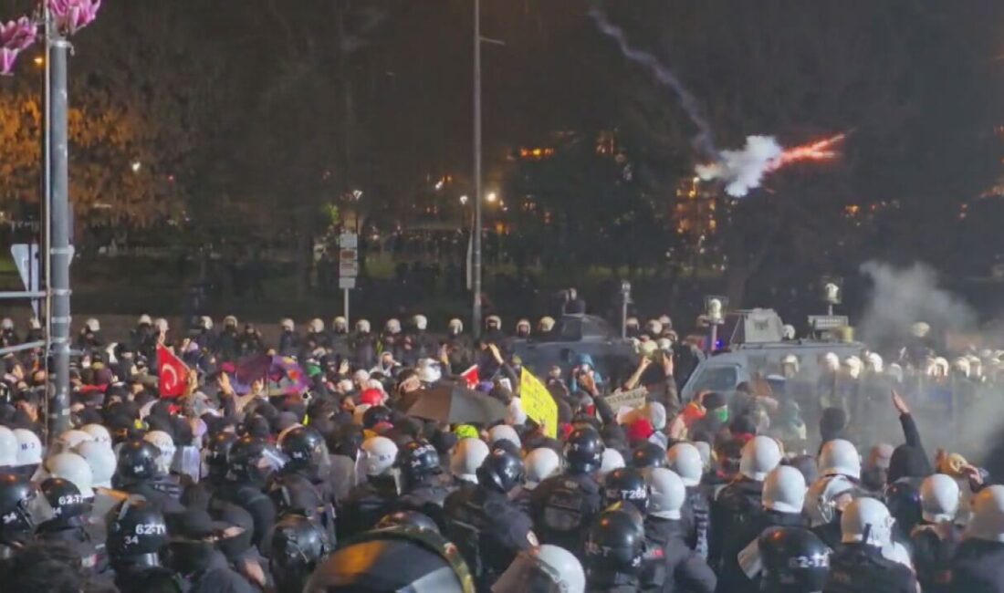 Mert ORDU – Dilara ŞAHİN – Soner HASIRCIOĞLU/İSTANBUL, – SARAÇHANE’de Ekrem İmamoğlu’nun tutuklanmasını protesto etmek amacıyla izinsiz gösteri düzenleyen ve polise taş ve yanıcı maddeler atan gruba, polis biber gazı kullanarak müdahalede bulundu.