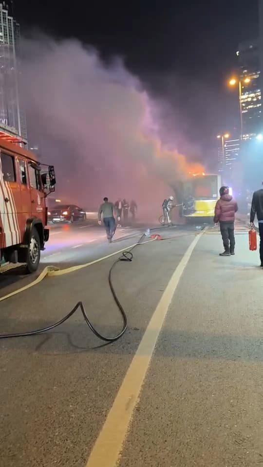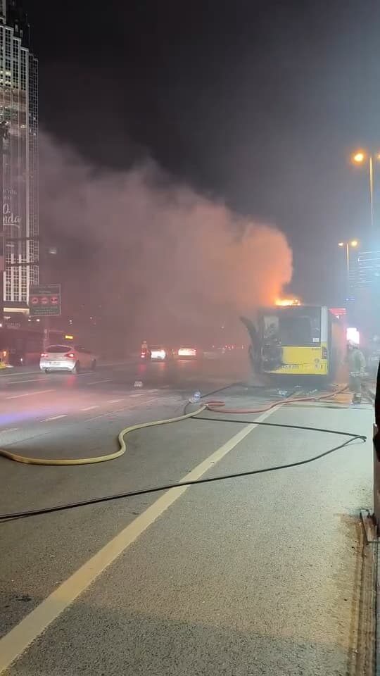Yangın, saat 23.00 sıralarında Büyükdere Caddesi’nde Beşiktaş istikametine seyir halindeki 34 HO 2497 plakalı İETT bünyesindeki özel halk otobüsünde henüz bilinmeyen bir nedenle çıktı. Otobüsten yükselen dumanları fark eden trafikteki diğer sürücülerin uyarısı üzerine otobüs şoförü aracı emniyet şeridine çekti. Otobüsün motor kısmından yükselen alevler kısa sürede büyüdü. Olay yerine ihbar üzerine polis ve itfaiye ekipleri sevk edildi. Çevredeki vatandaşların, alev alev yanan otobüse yangın tüpüyle yaptıkları müdahale yetersiz kalırken, olay yerine ulaşan itfaiye ekiplerinin müdahalesiyle yangın kontrol altına alınarak söndürüldü. Otobüste yolcu bulunmadığı öğrenilirken, otobüs kullanılamaz hale geldi. Yangın nedeniyle bölgede trafik yoğunluğu oluşurken, otobüsün kaldırılmasının ardından ulaşım normale döndü. Olayla ilgili inceleme başlatıldı.