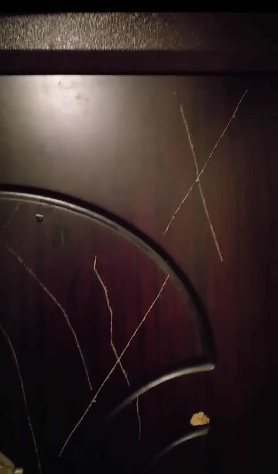 Servet Dağeşen’ın verdiği ifadede, “Bülent A. isimli şahsın annesi benim üst komşum. Bugün annesiyle duruşmam vardı. Duruşma sonrası evime geldim. Evime geldiğimde yasal izinle taktırdığım kendi dairemin üzerinde bulunan kameranın parçalanmış olduğunu gördüm. Kapımın da bıçakla çizildiğini gördüm. Ayrıca kapımın önünde bir adet mermi de vardı. Kamera kayıtlarını geri sardığımda şahsın Zeynep A.’nın oğlu Bülent A. olduğunu gördüm. Polis çağırdım. Polisleri beklerken şahıs saldırgan tavırlar sergiledi. Bana saldırdı ve ekipler ayırdı. Senin saçını keseceğim. Bu binaya giremeyeceksin. Kanını dökeceğim gibi tehditler etti. Şahıstan şikayetçi ve davacıyım. Azmettiren kişinin annesi olduğunu düşünüyorum. Uzaklaştırma talep ediyorum” cümlelerini kullandı.