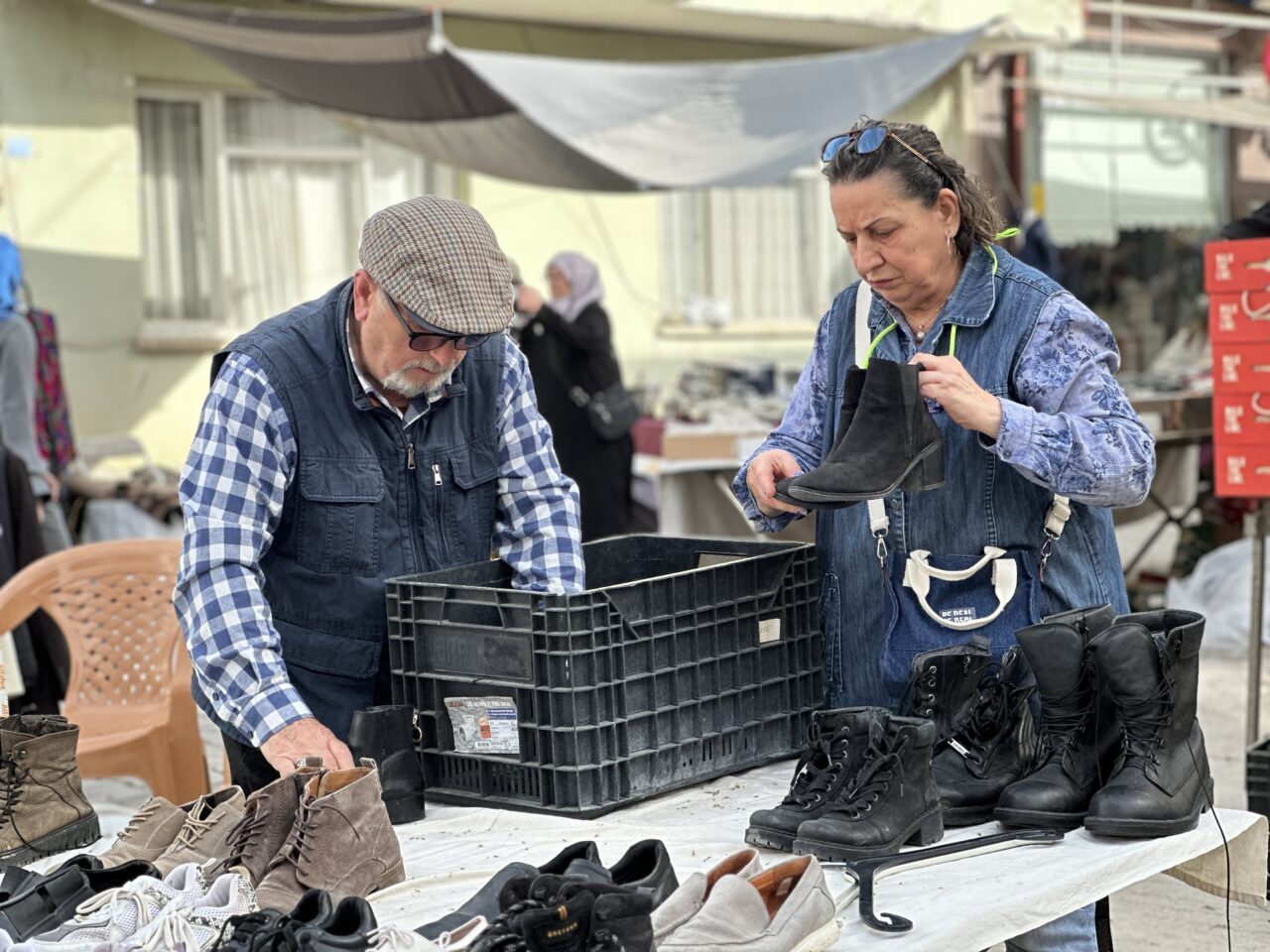 Sadece eşyaların satışından elde ettiği gelirle değil, bazen de öğrencilerin ihtiyacı olan kıyafetleri ulaştırarak onlara destek olduğunu söyleyen Ayşe Selmin Aydoğdu, “Sınıf öğretmenliğinden emekli olduktan sonra 7 yıl Görükle’de bu işi yaptım. Eşimle beraber, hem ikinci el hem sıfır eşyaları satarak, öğrencileri okuttuk. Ama sadece satarak değil, ihtiyacı olanlara ücretsiz dağıtarak da destek oluyoruz. Satışlarımız Görükle’deki gibi değil, burada bazen hiç siftah yapmadan kapatıp, gidiyoruz. Herkesi sergimize bekliyorum. Hem öğrencilere hem de ihtiyacı olanlara destek olacak inşallah” dedi.